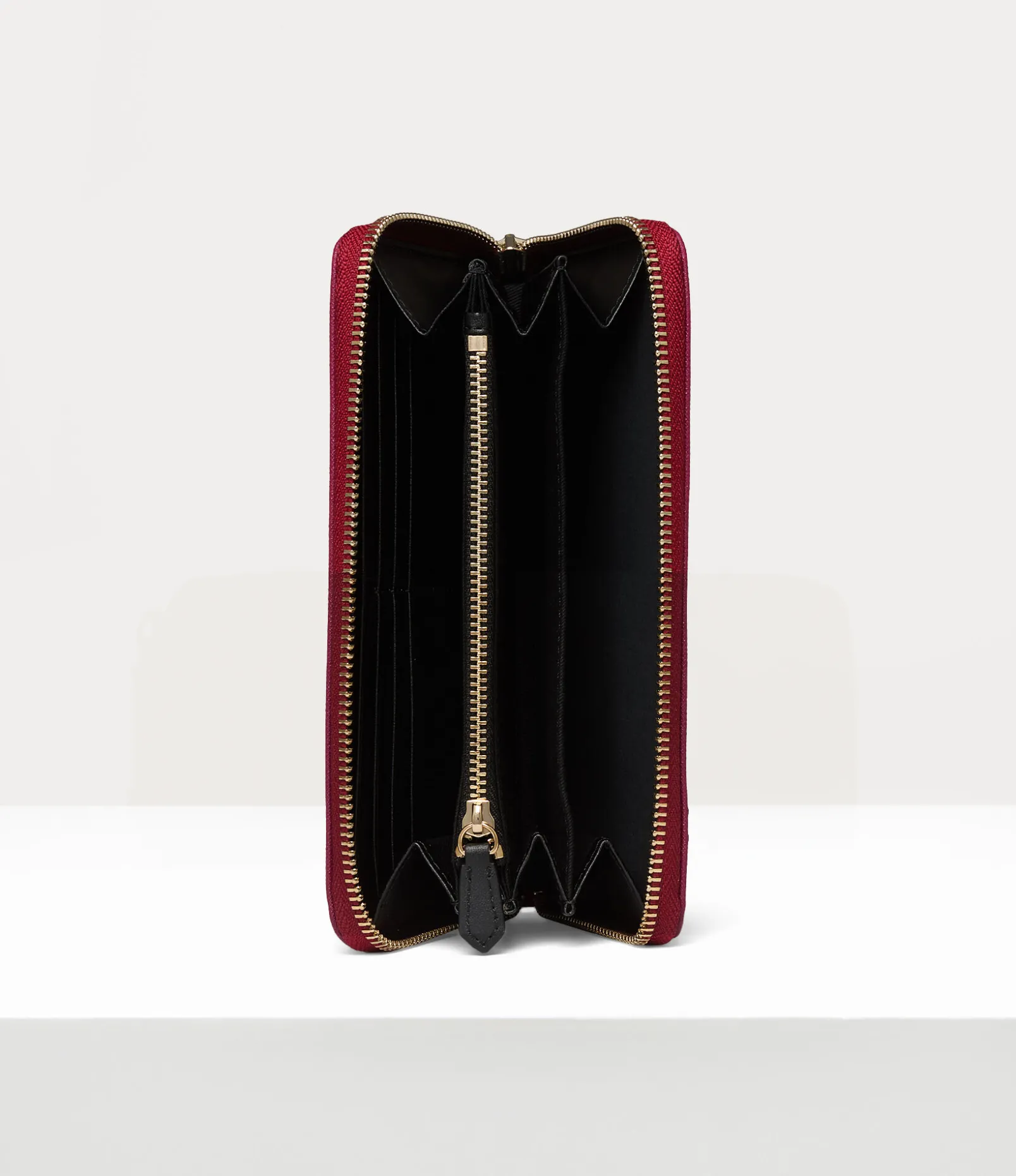 The Classic Zip Round wallet returns in this season’s new Saffiano embossed PU fabric. The silhouette revives the house’s signature orb motif on the front panel of the design – synonymous with Vivienne’s vision of launching tradition into the future. Complete with a top-zip closure, this style includes an organised interior compartment for extra storage.