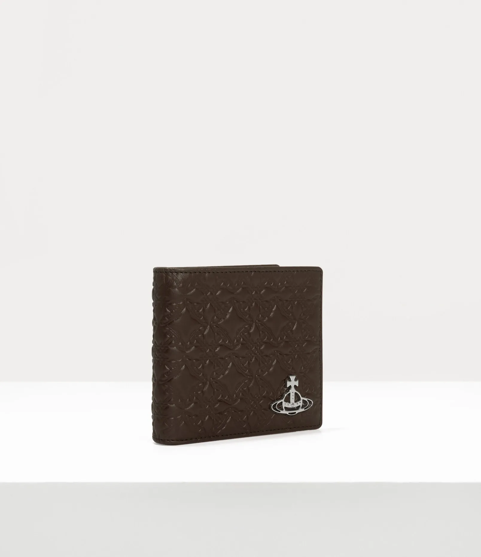 Our Man. Billfold wallet features an orb-embossed texture, complete with the signature Vivienne Westwood embossing on the inner panel. The design takes inspiration from our orb emblem, which integrates the Saturn ring to symbolise Vivienne’s vision of launching tradition into the future.