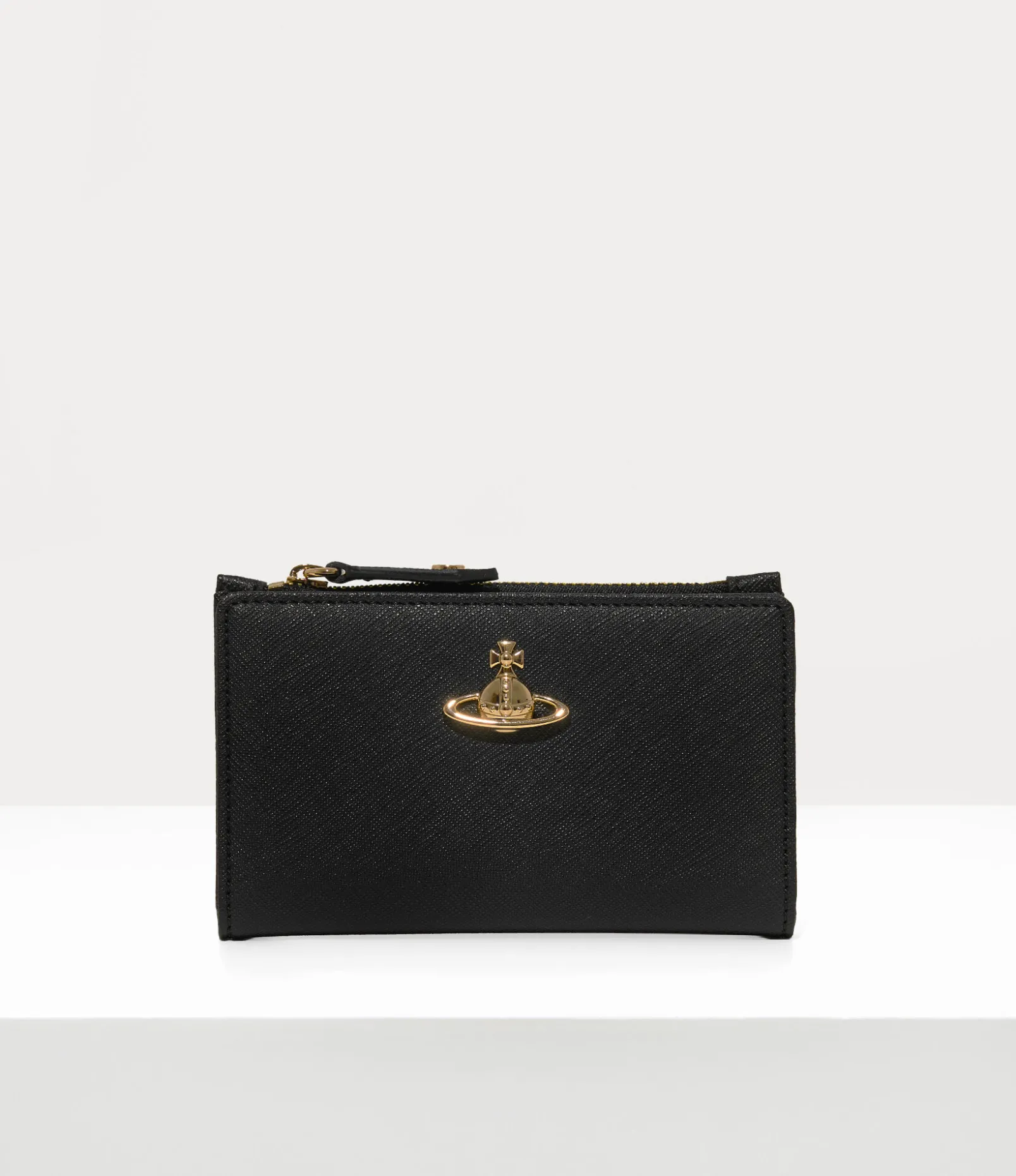 The Slim Flap card holder returns in this season’s new saffiano-embossed PU finish. The piece receives our signature orb motif on the front panel, reflecting Vivienne’s vision of blending tradition with the future, complete with a top-zip closure and six internal card slots.
