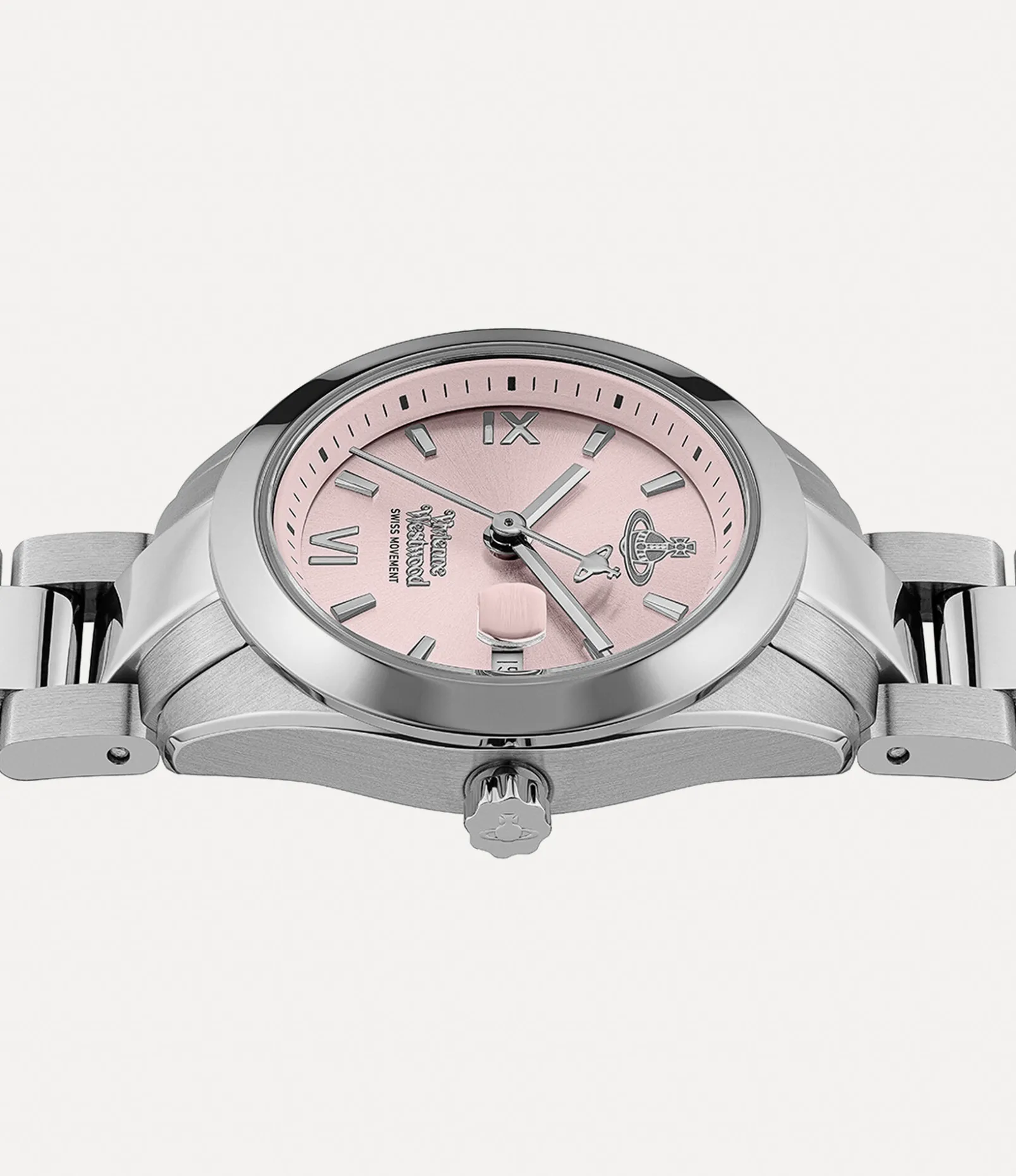 Part of our popular Fenchurch collection, this season’s Fenchurch watch features a distinctive three-link bracelet, finished in polished silver tones. Named after London’s historic financial district that resonated with Vivienne, this piece is elegantly detailed with a date feature at the 3 o’clock position.