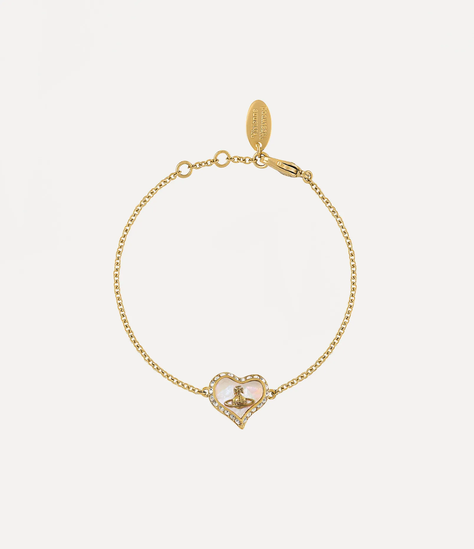 Our Petra bracelet revives our iconic asymmetric heart silhouette, outlined with white-coloured crystals and finished with a gold-tone orb motif in the centre of the design. The heart shape has become a signature style of the house, synonymous with Vivienne’s affection for both humanity and the planet.