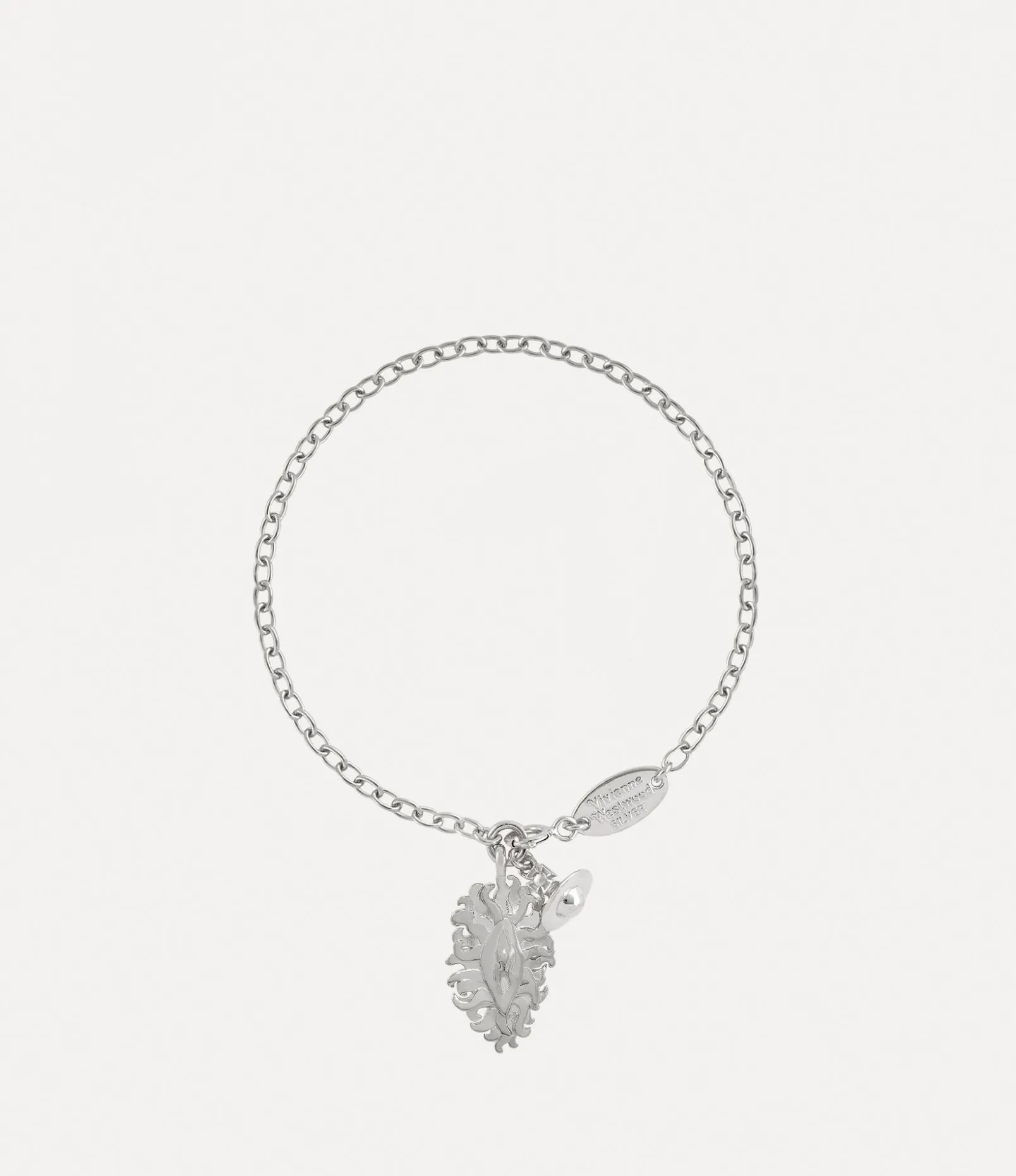 The Veronica bracelet features our iconic ‘Veronica’ motif in the centre of the design, synonymous with themes of femininity and strength. The piece receives an all-metal dangle orb motif in platinum-plated silver, evoking our house’s vision for taking tradition into the future.