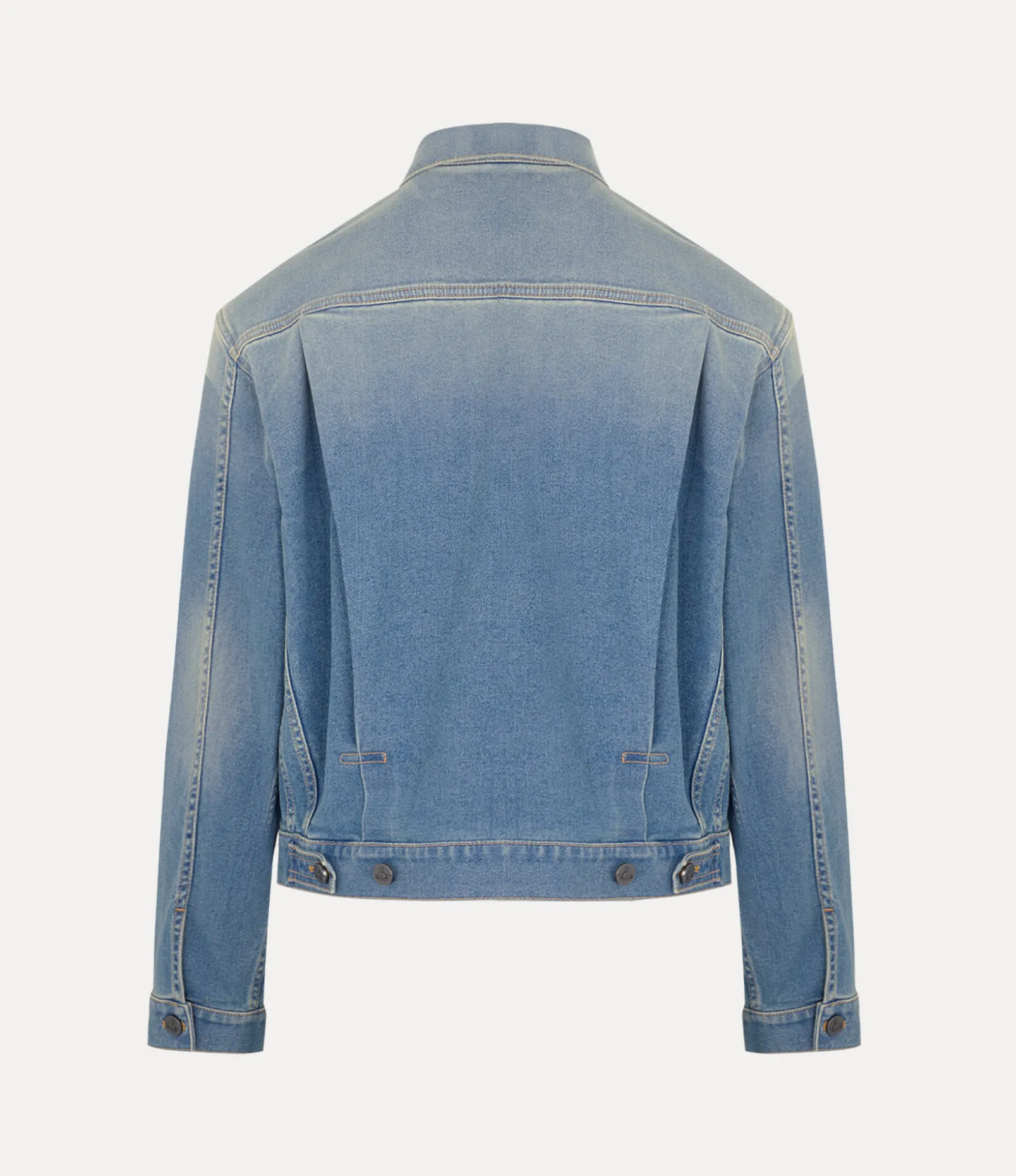 Our signature Marlene jacket features a soft denim silhouette, complete with contrasting topstitching in a classic tan thread. As part of our new range, the piece offers new branding, showcased by the orb-engraved buttons and an enlarged orb embroidery on the front pocket – synonymous with Vivienne’s vision of taking tradition into the future.