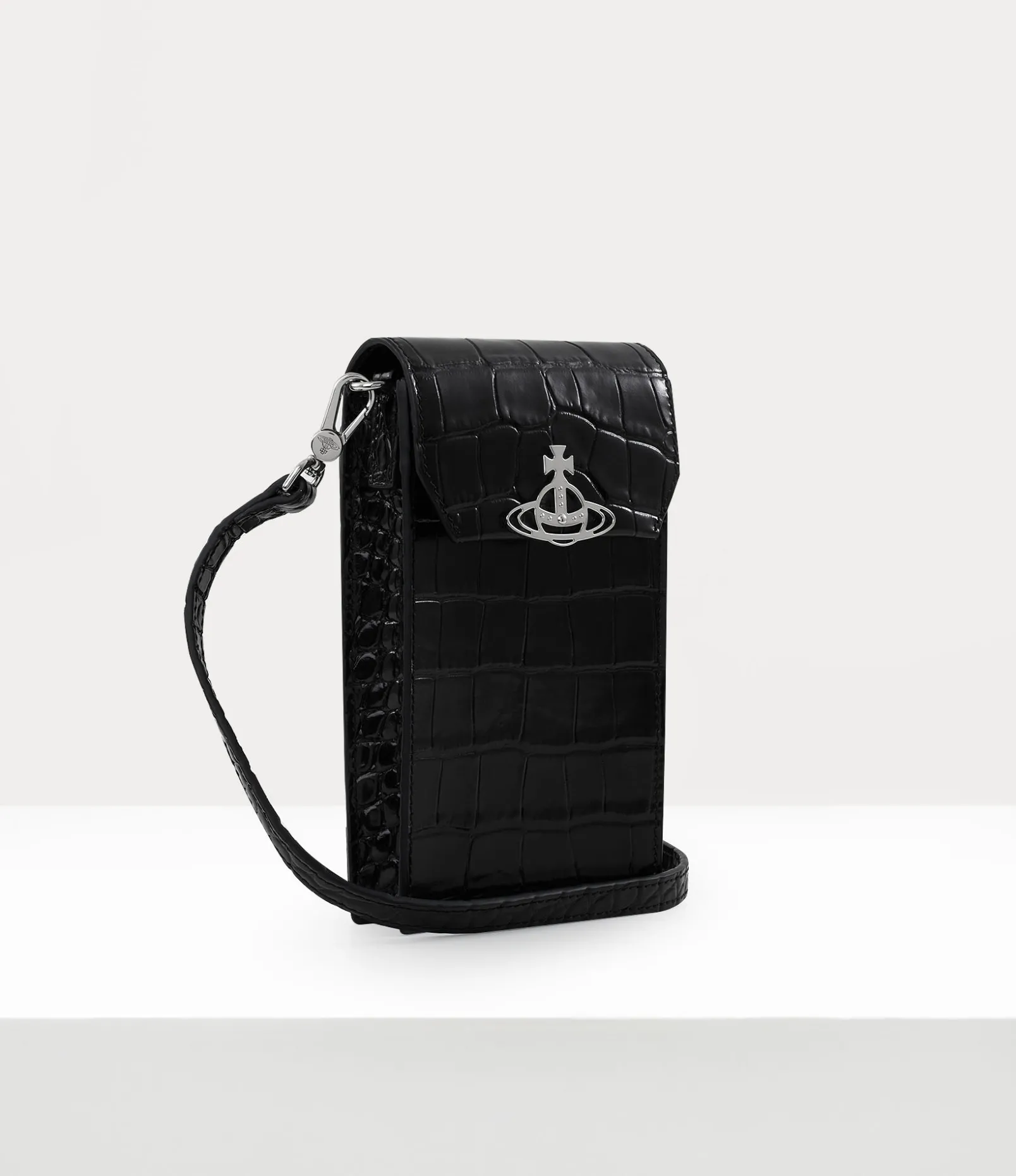 Our Crocodile Phone bag in leather features an embossed surface, reminiscent of our ‘Wild Beauty’ collection. The design showcases our renowned orb in silver tones, an emblem created by Vivienne Westwood in the 1980s to symbolise taking tradition into the future.