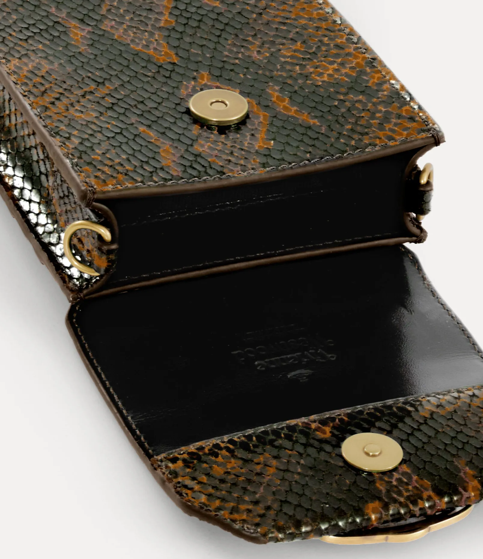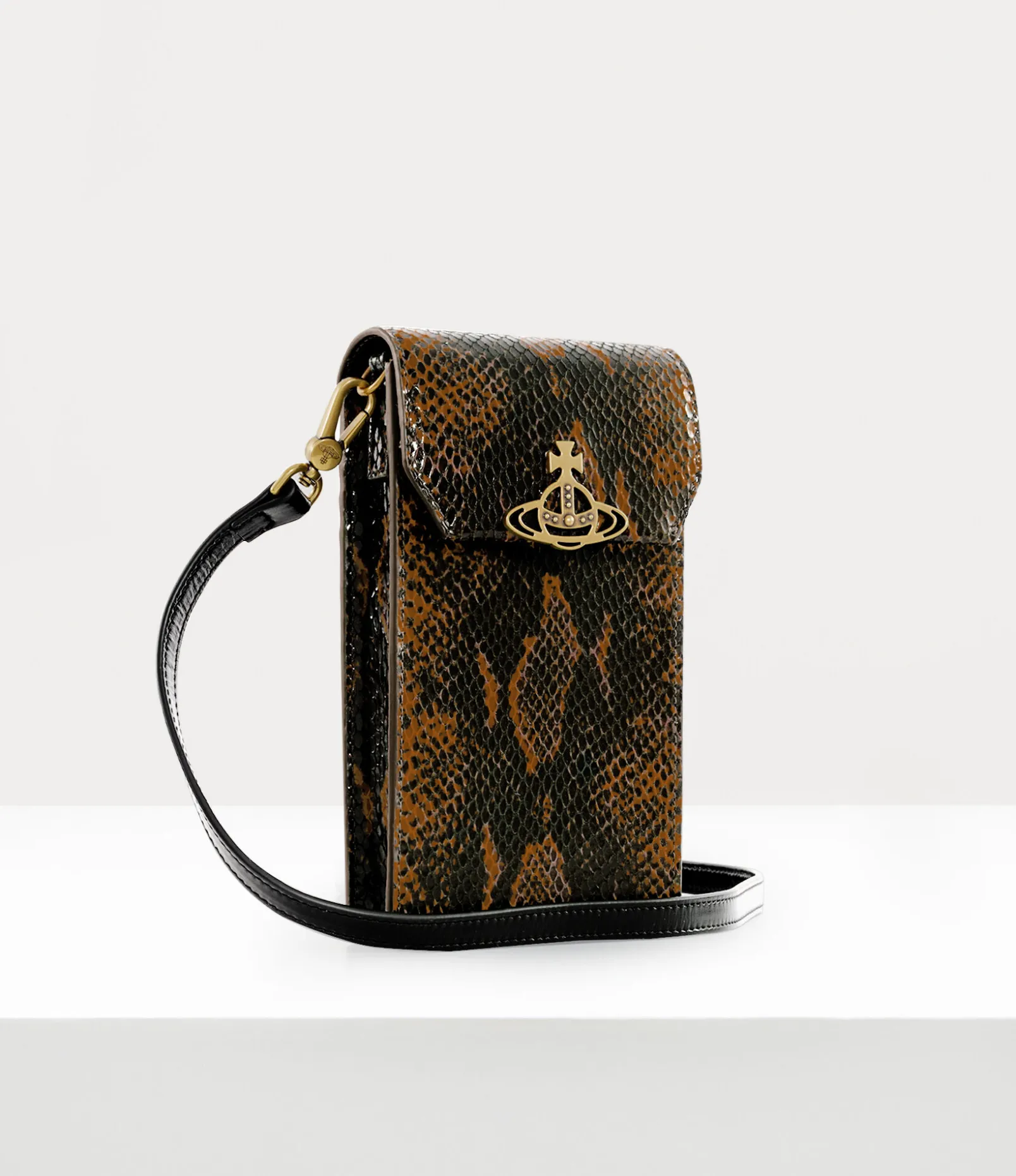 This season, our signature Phone bag debuts a new ‘snakeskin’ pattern inspired by our dynamic Hammerhead trainers, first introduced in the 1982 ‘Savage’ collection. The bag features our ‘Thin Line Orb’ motif on the magnetic press-stud fastening, embodying Vivienne’s vision of taking tradition into the future.