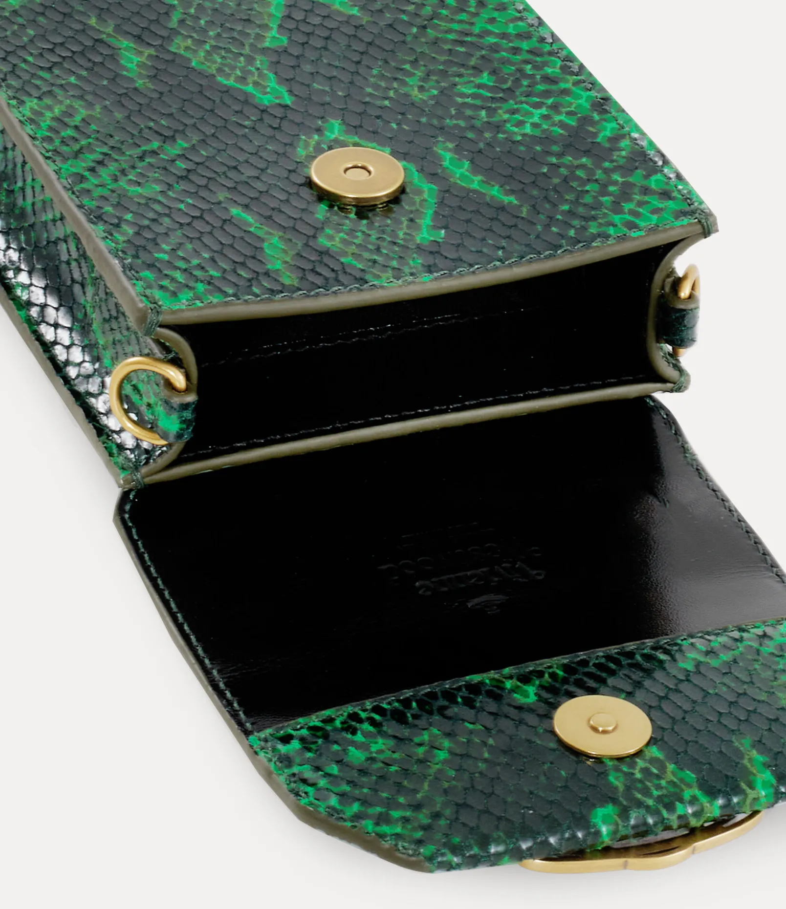 This season, our signature Phone bag debuts a new ‘snakeskin’ pattern inspired by our dynamic Hammerhead trainers, first introduced in the 1982 ‘Savage’ collection. The bag features our ‘Thin Line Orb’ motif on the magnetic press-stud fastening, embodying Vivienne’s vision of taking tradition into the future.
