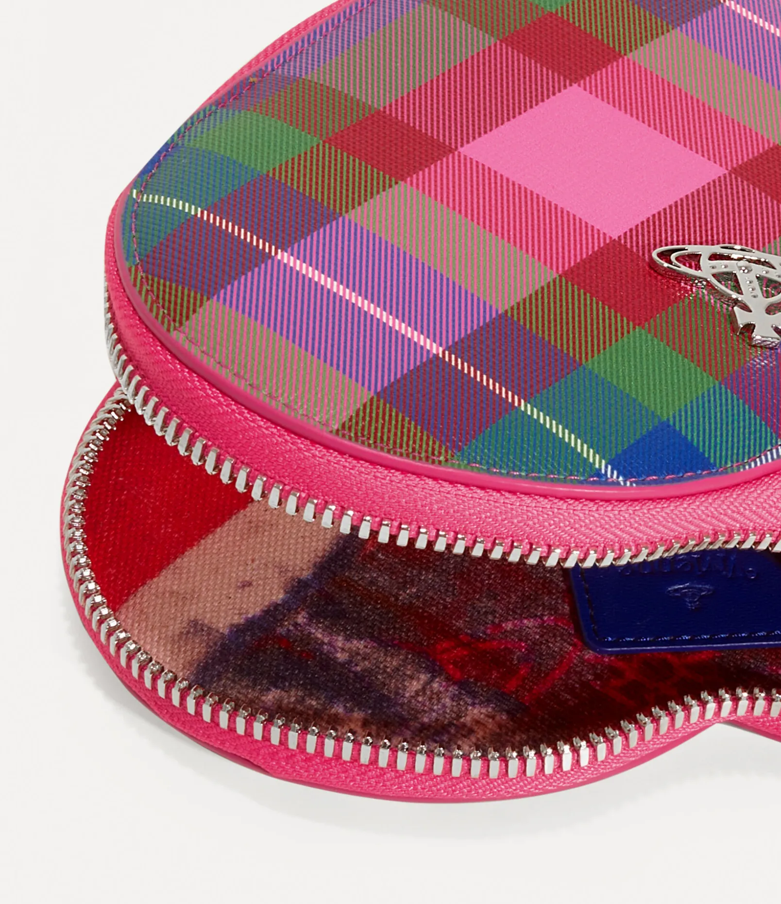 The heart shape has become a signature style of the house, having appeared in many collections throughout our history, from political prints to cherished artworks. The silhouette of the Heart Crossbody bag revives the motif, complete with our ‘candy tartan’ across the design – a playful, candy-toned pattern that evokes the wild beauty of the Scottish Highlands, which inspires this season’s collection.