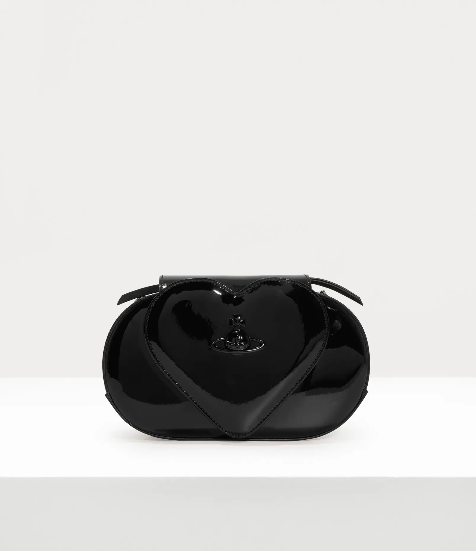 The heart shape remains an essential element of the house’s iconography, which Vivienne used to evoke an affection for both humanity and the planet. The silhouette of the Jonny Heart Flap Crossbody bag revives the heart design, complete with our new three-dimensional orb, finished in shiny patent leather.