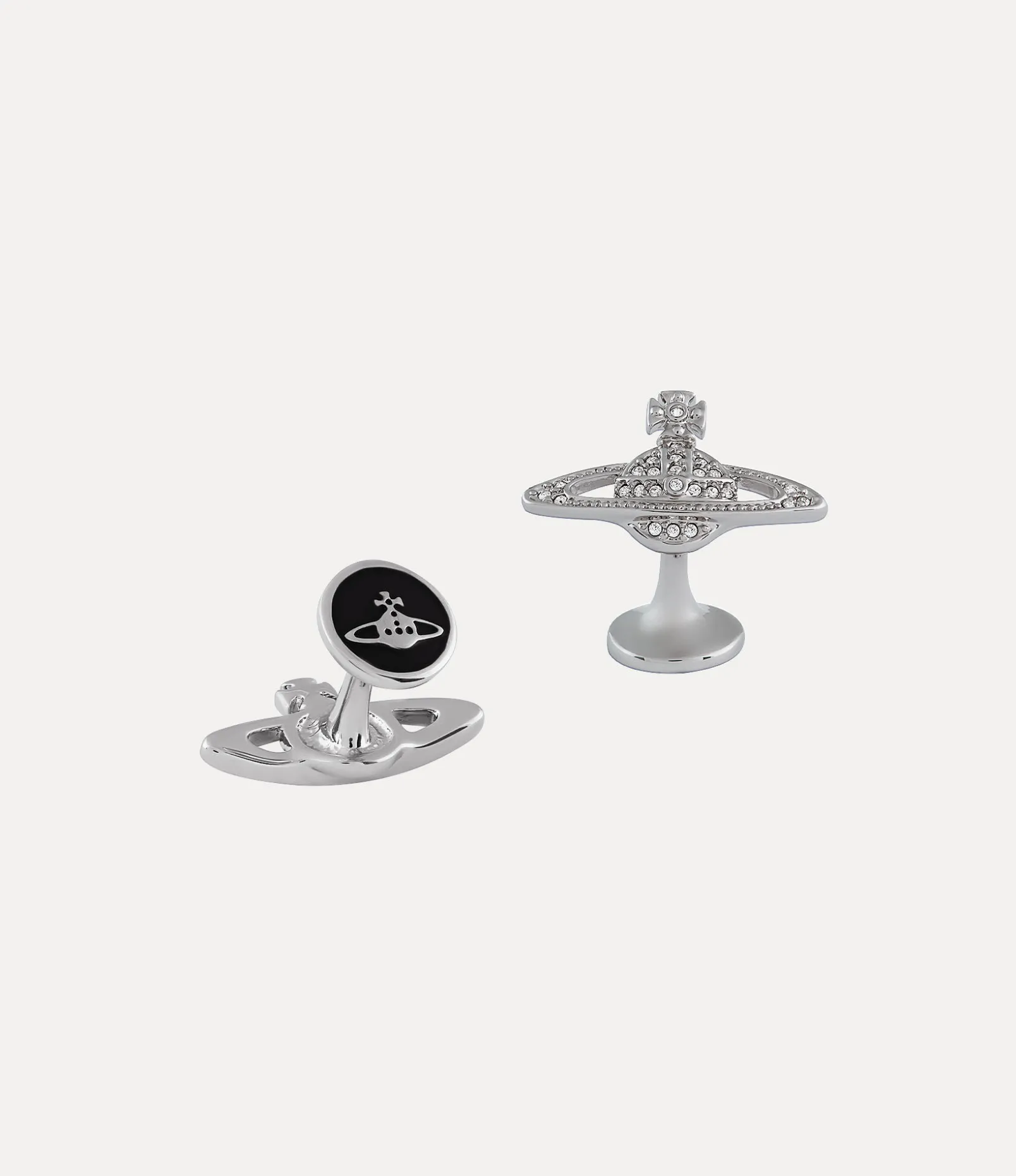 The Mini Bas Relief cufflinks form part of our classic collection and use the orb and Saturn ring as their inspiration. Cast from silver tones, they are encrusted with Swarovski crystals.