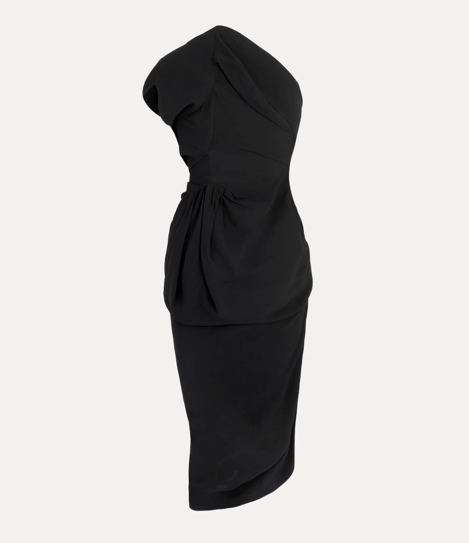 First showcased in our Autumn-Winter 1982-1983 ‘Savage’ collection, the Andalouse dress returns this season in a lightweight viscose fabric. This statement piece is complete with draping details that fall into an asymmetric finish, paying tribute to the renowned tailoring techniques of Vivienne Westwood.