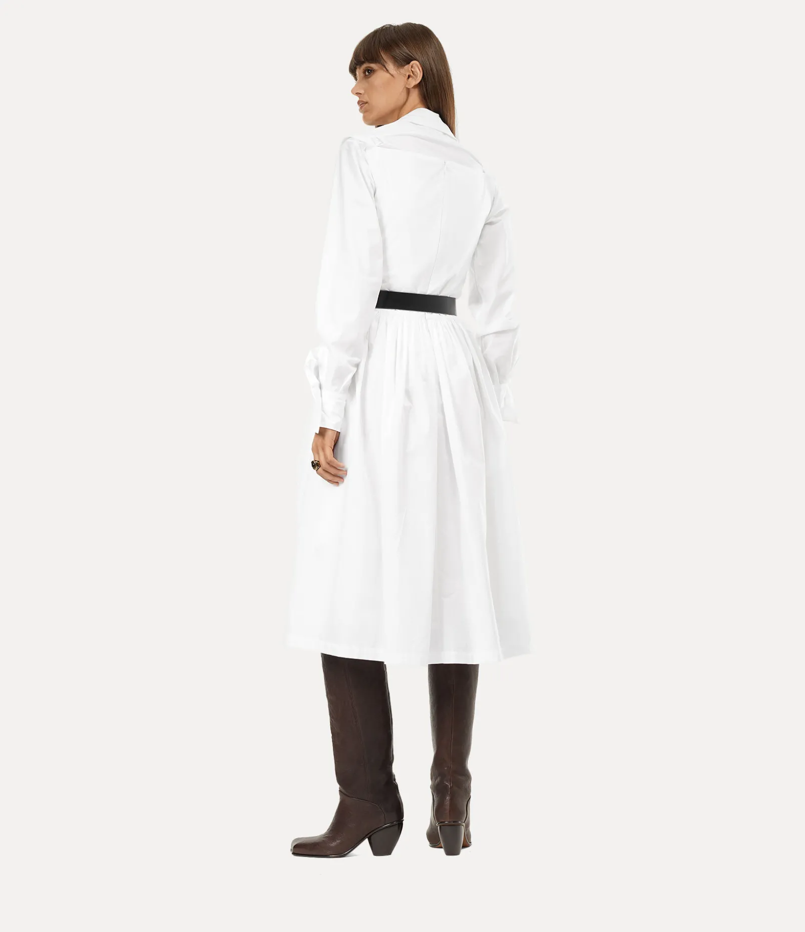 Our Sunday dress has been revived this season, first appearing in the Vivienne Westwood Spring-Summer 1997 ‘Vive La Bagatelle’ collection. Drawing inspiration from high-society women of 18th-century salon culture, this piece showcases a sculpted, corset-inspired silhouette that falls into a midi-length finish, complete with our embroidered orb at the hip.