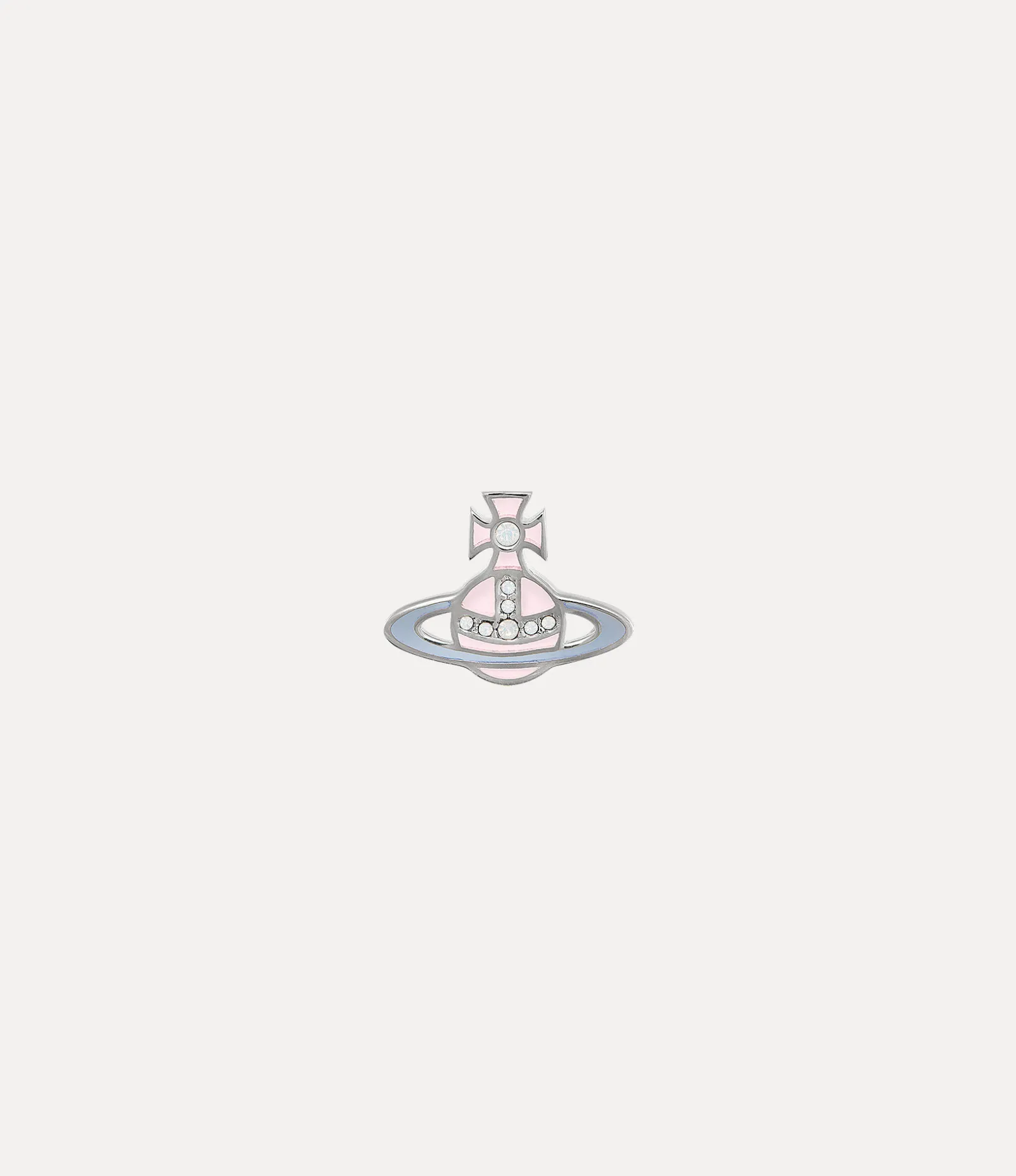 The Man. Concetta Single stud revives the iconic orb motif, embodying Vivienne Westwood’s vision of merging tradition with the future. The two-dimensional orb is elevated by a translucent two-tone enamel finish, accented with shimmering crystal details on the harness and cross top.