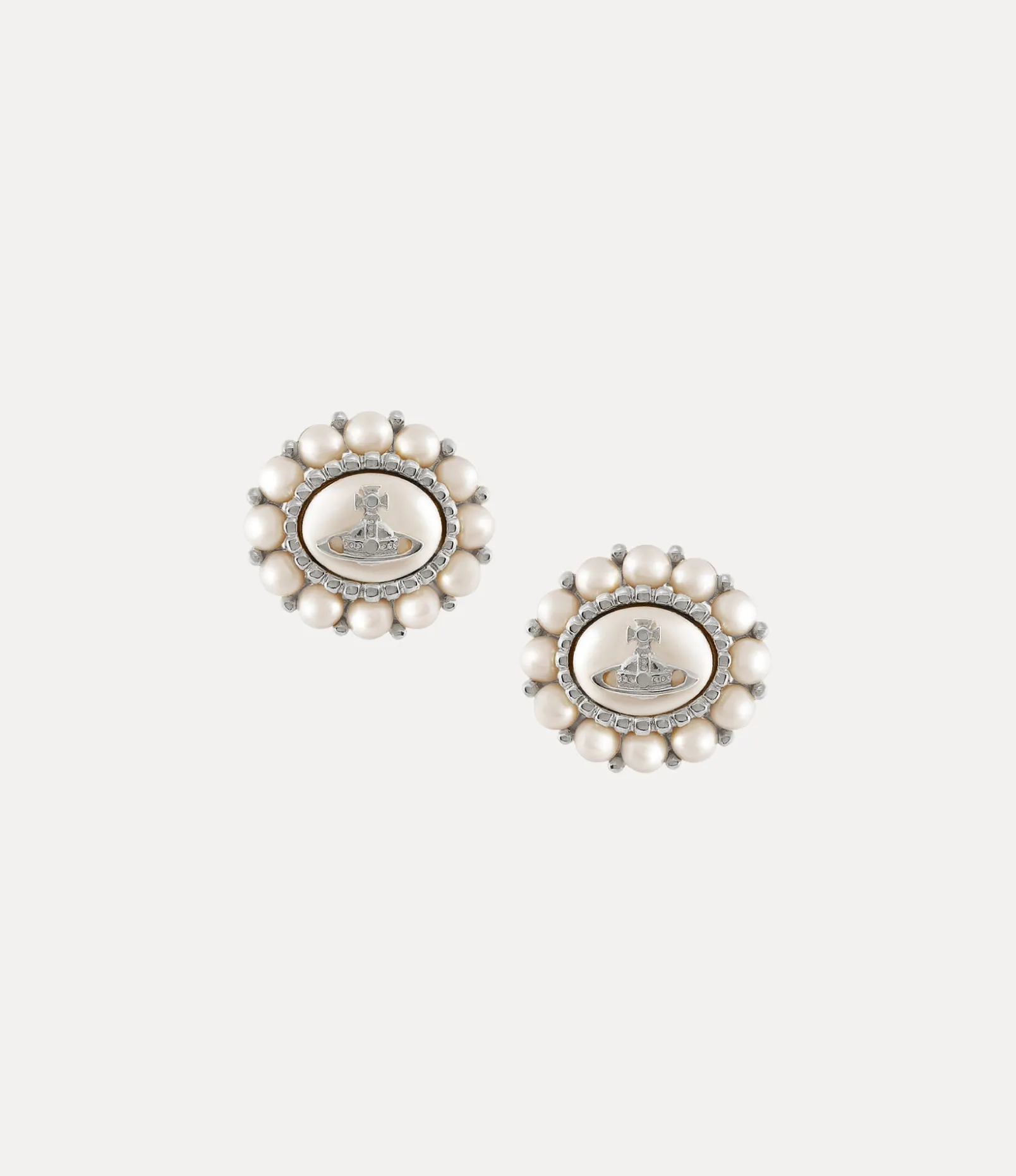Pearls are an essential part of our house’s heritage, emulating a sense of bygone luxury. The Small Amaya earrings feature a halo of glass-based pearls in a glistening white finish, complete with silver-tone plating. The piece receives an orb plaque in the centre of the design, a symbol of Vivienne’s vision of launching tradition into the future.