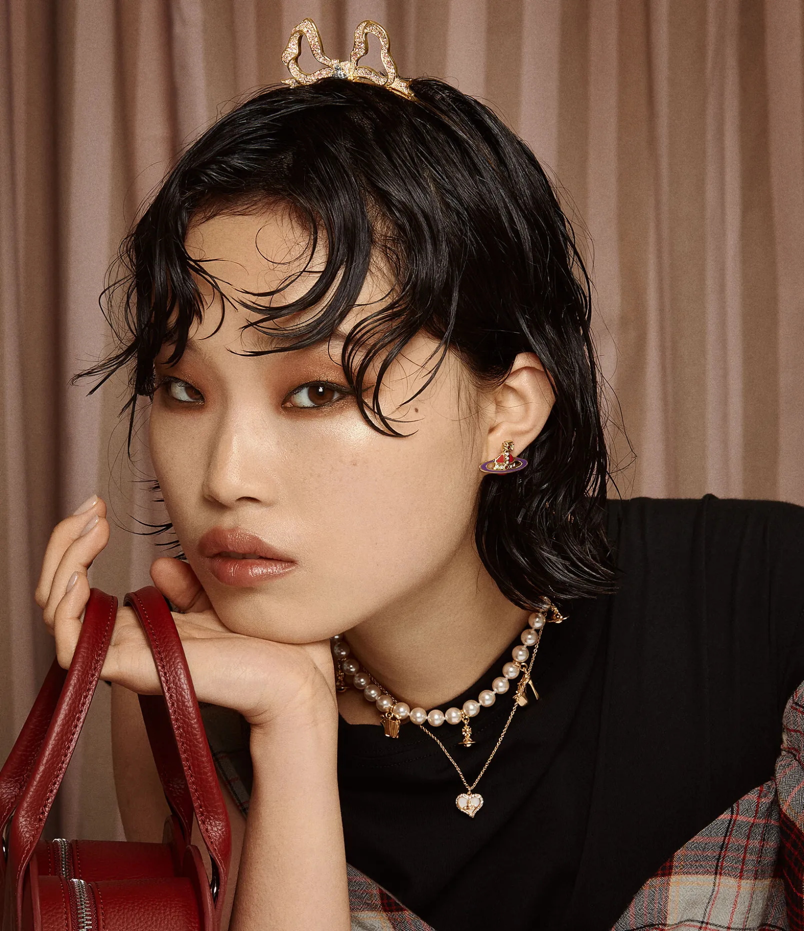 This season, our Small Neo Bas Relief earrings are offered in a purple and red enamel finish, complete with pink and white Swarovski crystals to complement the design. The gold-tone stud silhouette takes the form of our classic orb silhouette – reminiscent of Vivienne’s vision of taking tradition into the future.