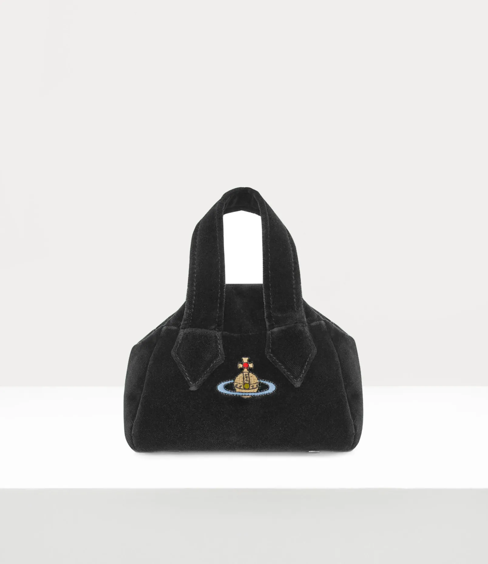 Our iconic Archive Mini Yasmine handbag, a new development of the house’s classic Yasmine style, was first presented at the Gold Label Autumn-Winter 1987/88 ‘Time Machine’ runway show. Named after the French designer Yasmine Eslami, who worked for Vivienne Westwood in the late ‘80s, the bag features a faded ‘Union Jack’ interior lining and cotton-velvet exterior panels, reflecting the opulent Neo-classical theme of this season.