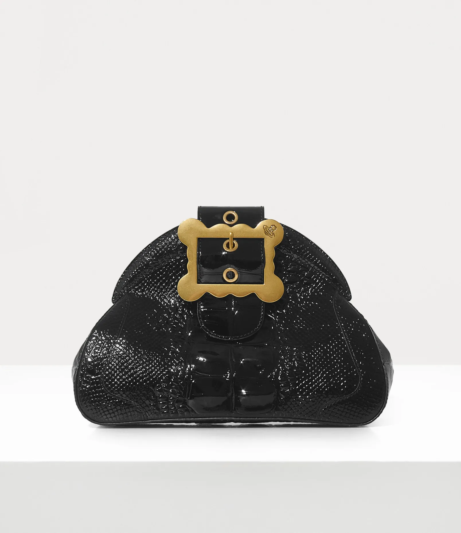 The house’s archival ‘frame buckle’ detail adorns the front of the Amy Shoulder bag, which draws inspiration from the gilt frames that encase Renaissance artworks. Complete with a croc-embossed finish, the design offers the illusion of being wrapped with a belt, reminiscent of the house’s signature DIY punk aesthetic.