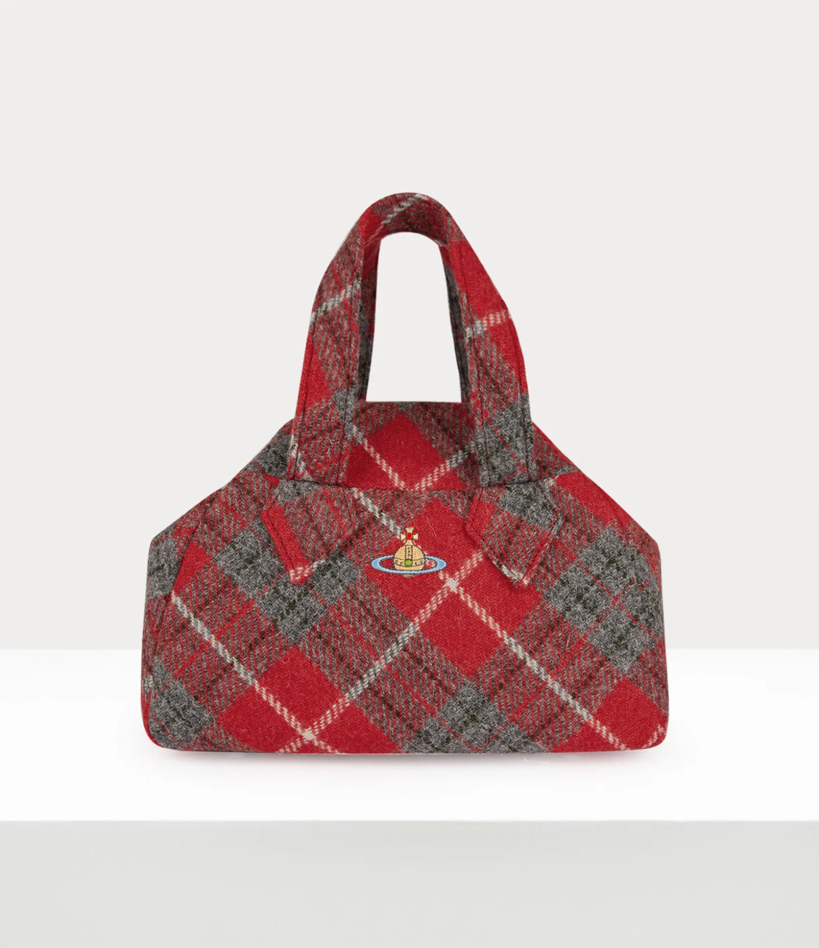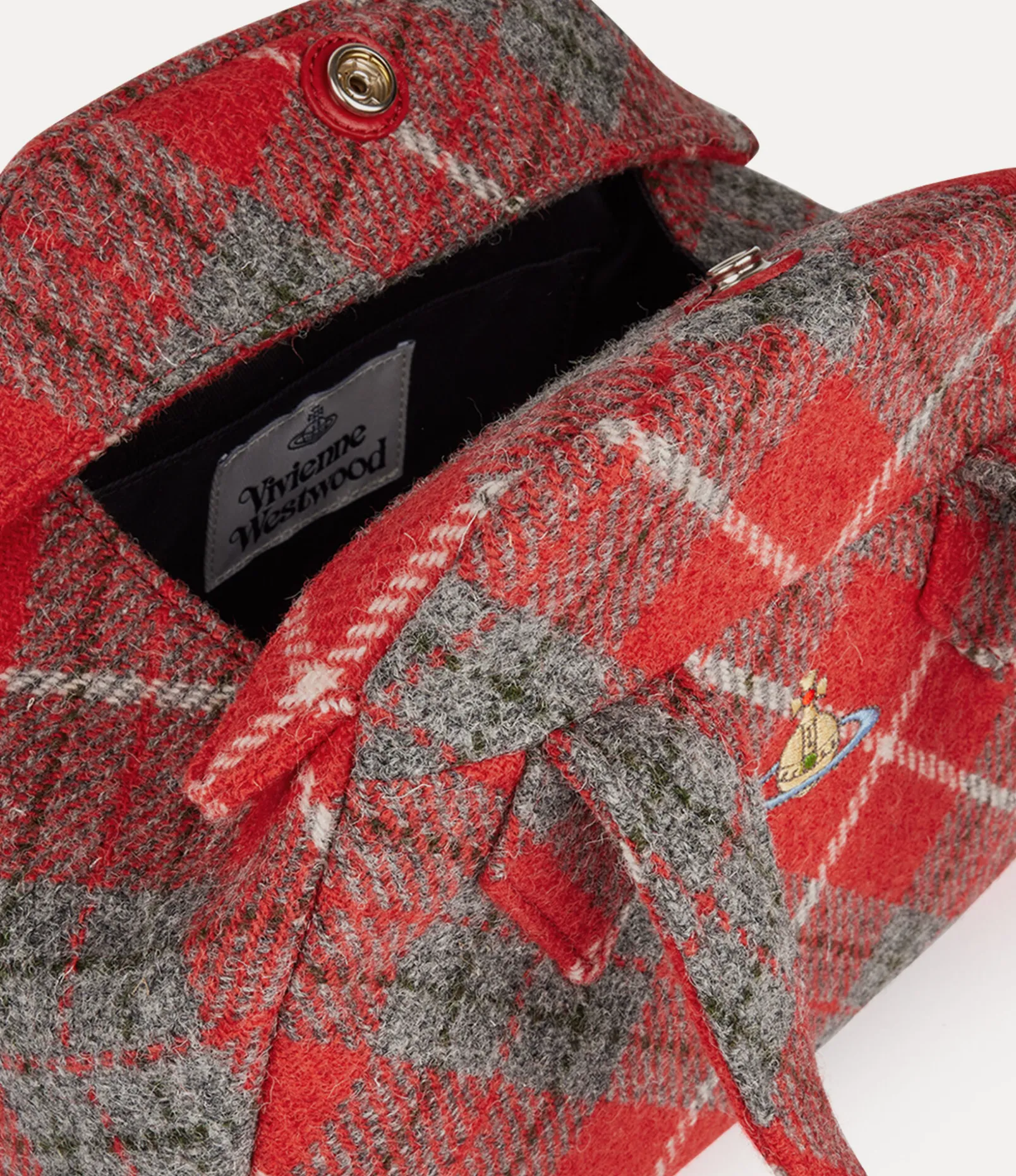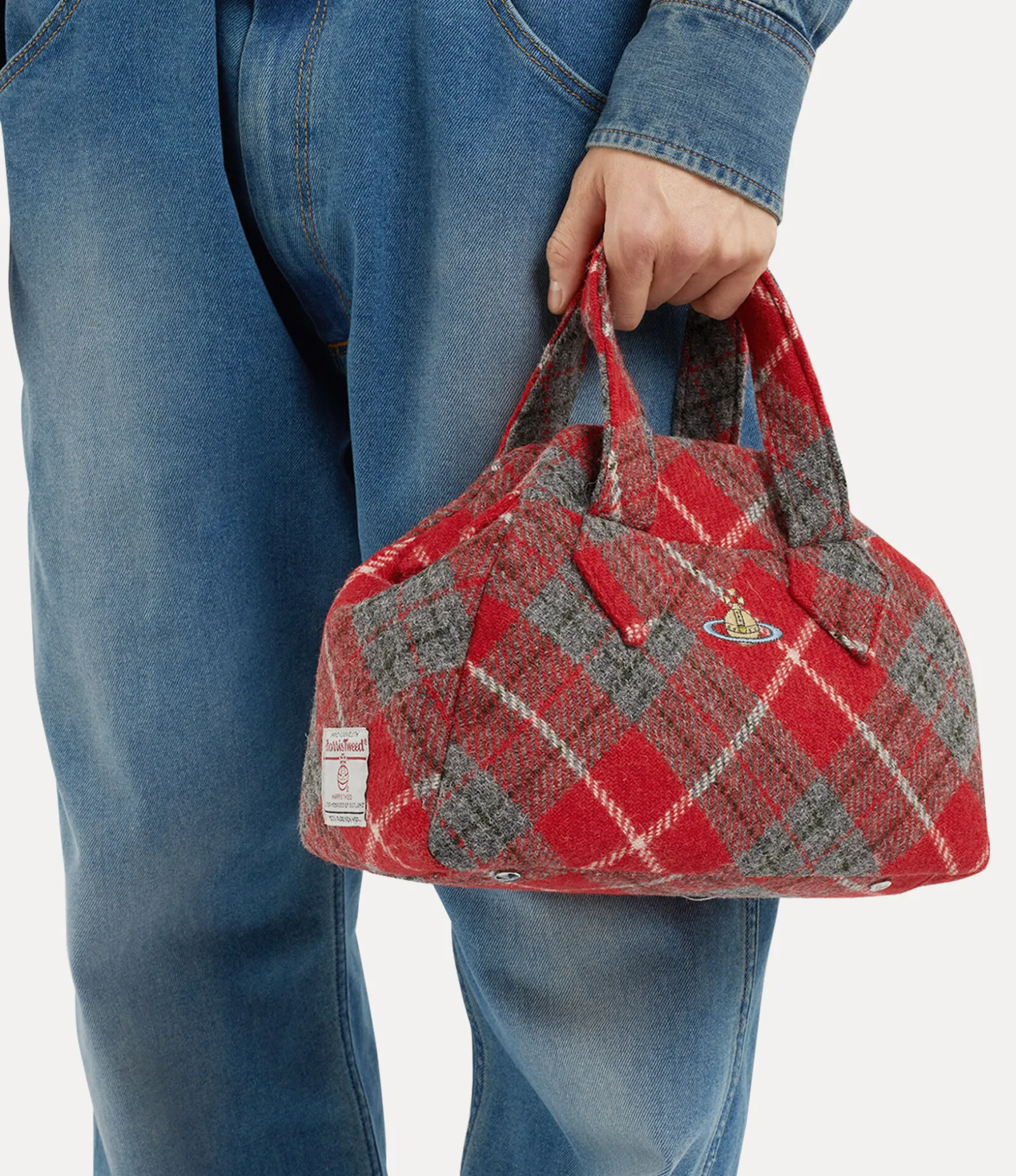 Tartan is a quintessential element of our house’s heritage, embodying Vivienne’s iconic punk approach. Our Archive Medium Yasmine handbag receives the Harris Tweed tartan pattern, complete with an embroidered orb on the front panel – alluding to Vivienne’s vision of taking tradition into the future.