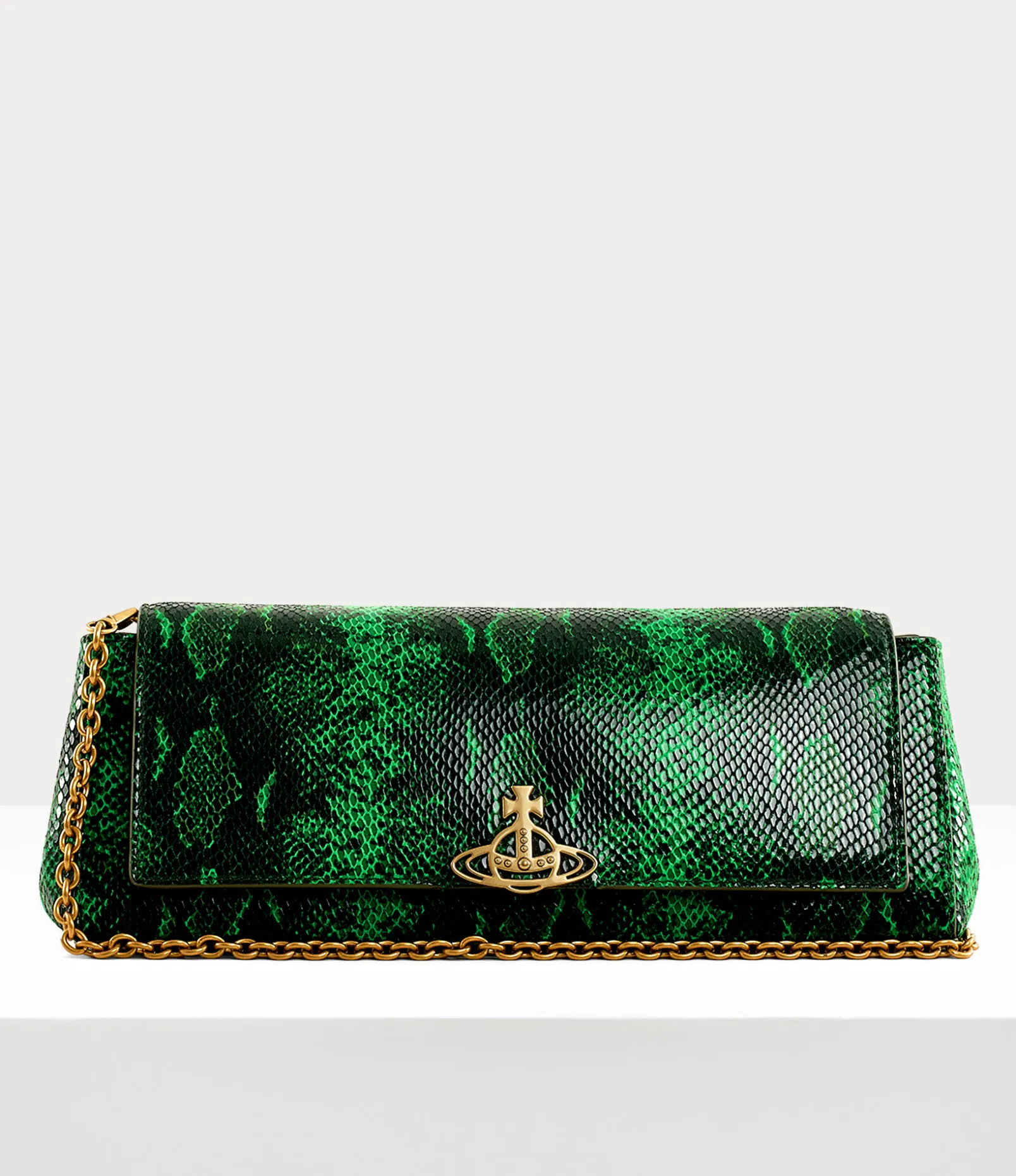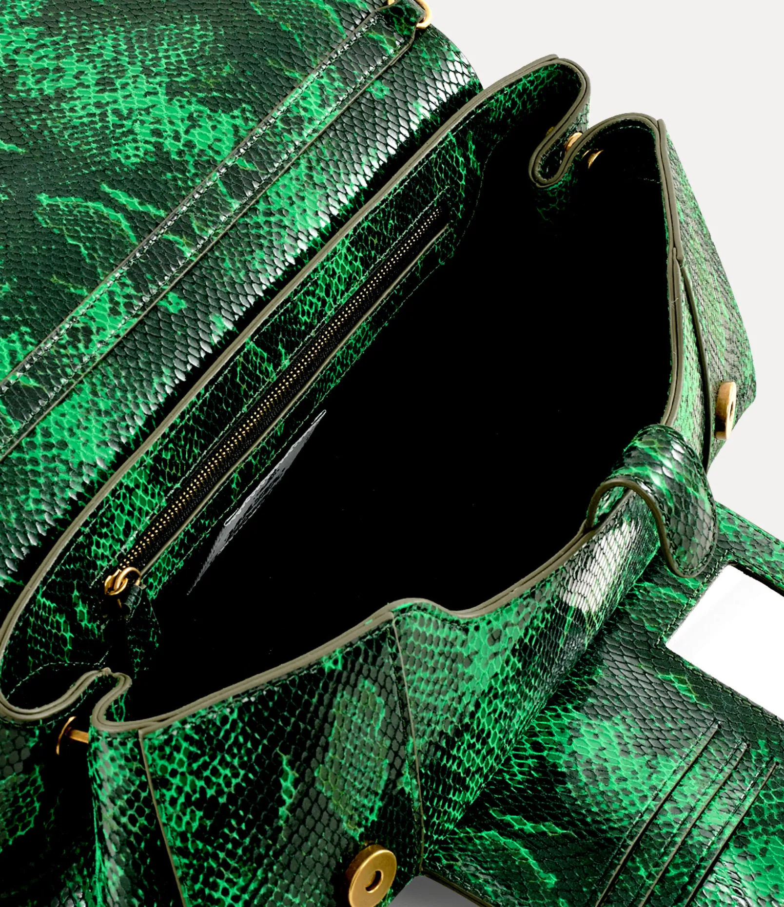 Our Large Hazel handbag is the latest development of the Hazel range this season. The piece features a python-embossed finish, complete with our signature broken pinstripe lining, a unique twist on the traditional pinstripe pattern, first seen in the Vivienne Westwood Gold Label Autumn-Winter 2015 collection.