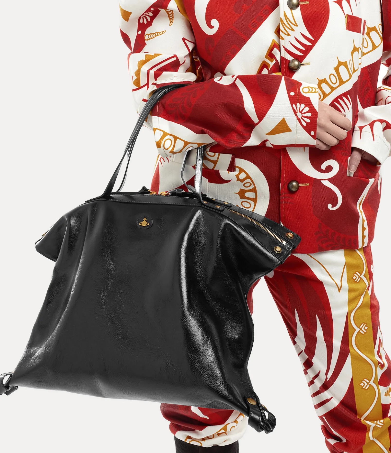 The Mara holdall, named after Andreas Kronthaler’s mother, is an archival style first seen in our Autumn-Winter 1994 ‘On Liberty’ runway show. With its slouchy and unlined design, this practical style offers the flexibility to expand and alter its shape by simply adjusting the side tabs.