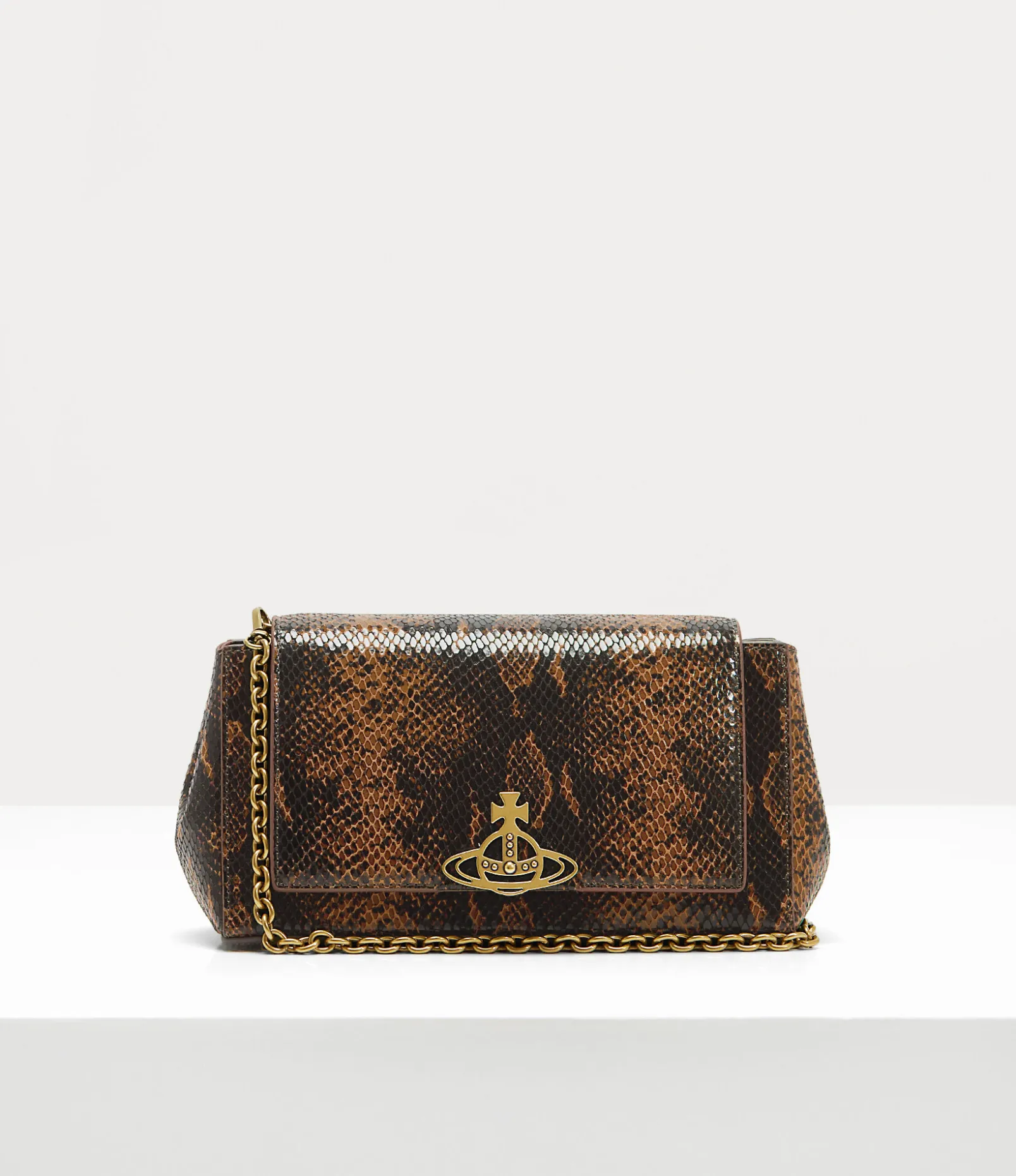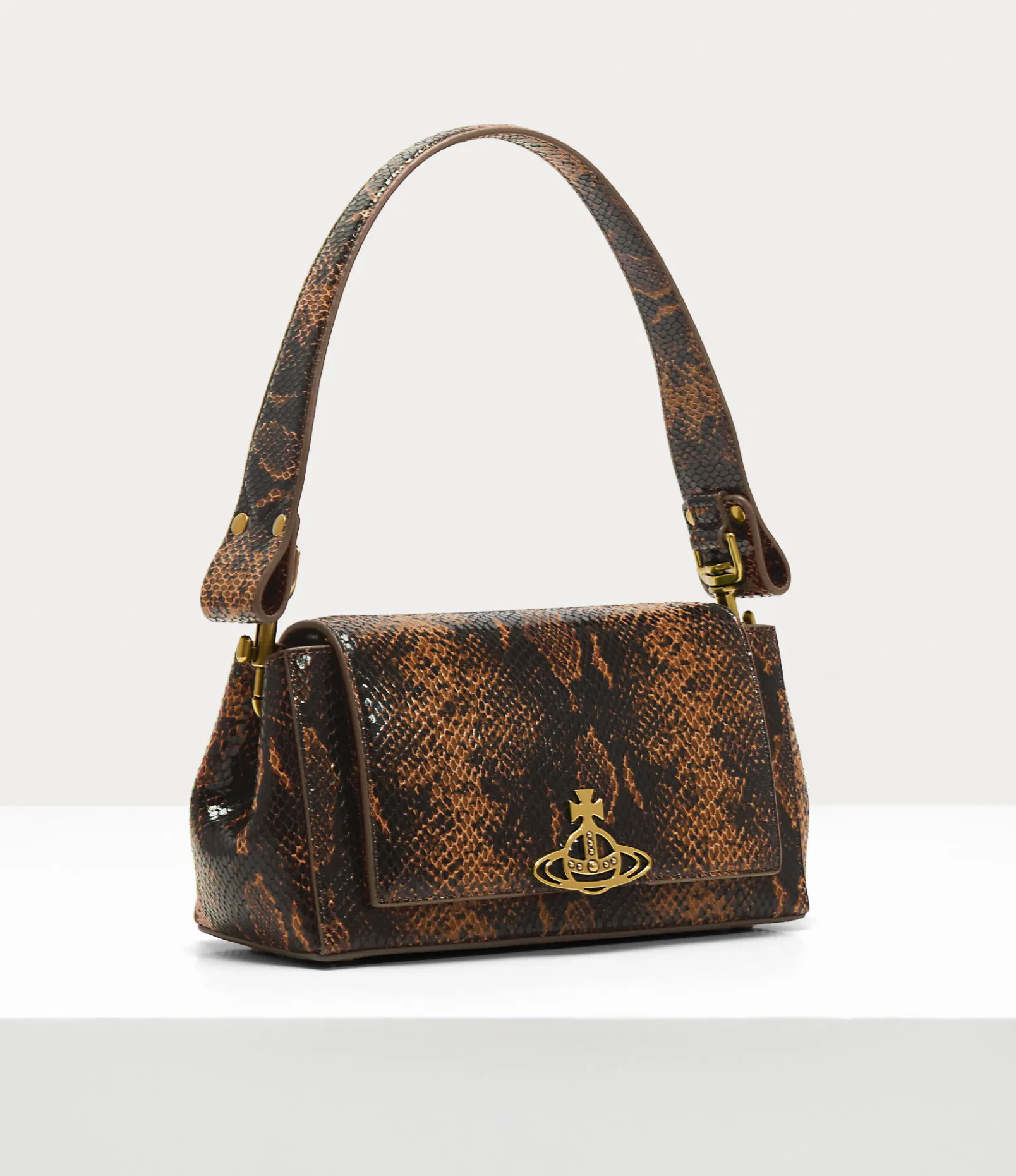 Our Medium Hazel handbag is the latest development of the Hazel range this season. The piece features a python-embossed finish, complete with our signature broken pinstripe lining, a unique twist on the traditional pinstripe pattern, first seen in the Vivienne Westwood Gold Label Autumn-Winter 2015 collection.