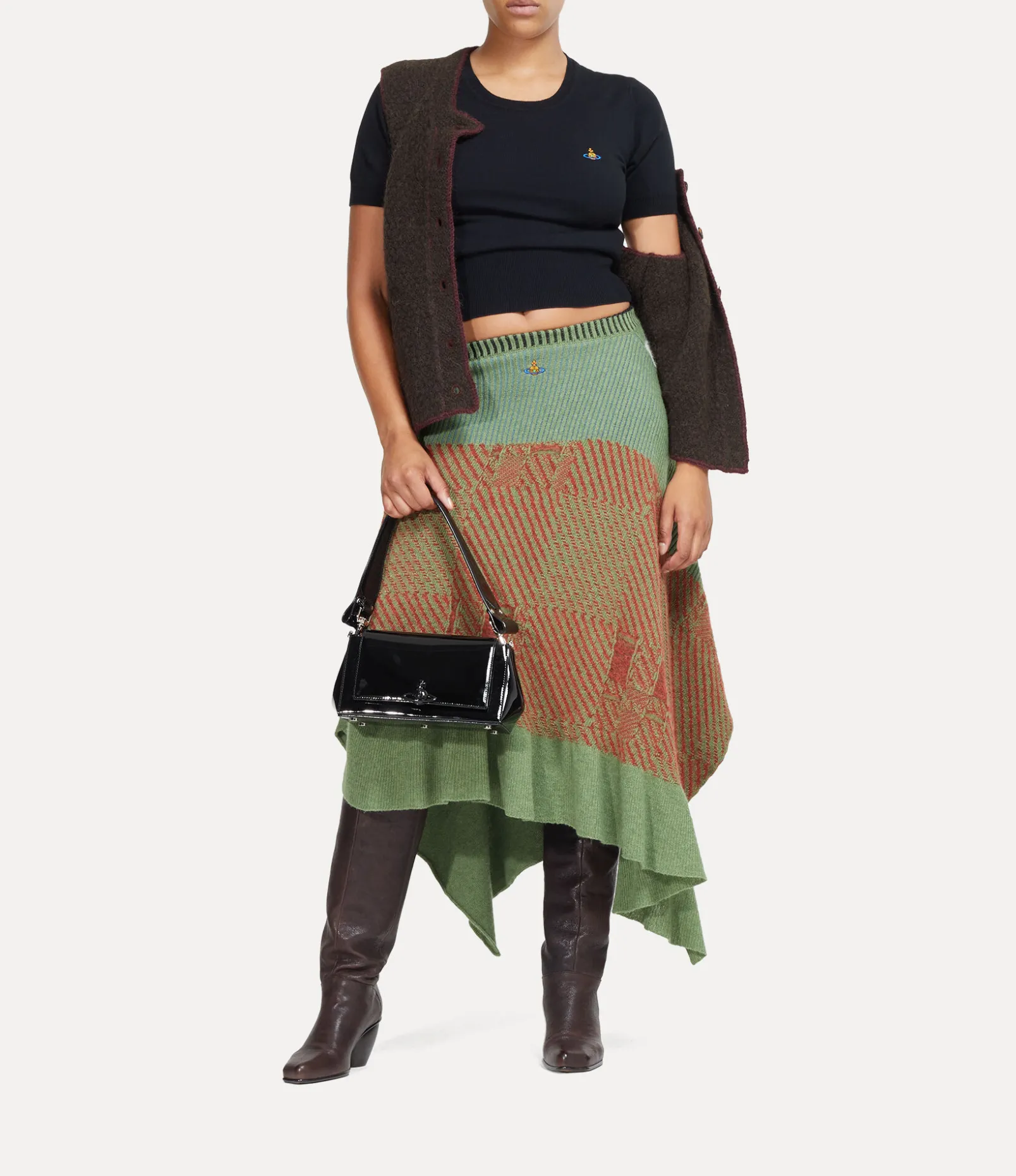 Our Medium Hazel handbag features an all-over patent finish, reminiscent of the liquid latex and rubberwear sold in our iconic SEX boutique, now known as Worlds’ End. The piece is enhanced by our enamel orb branding on the magnetic fastening, evoking Vivienne’s vision of launching tradition into the future, complete with a soft cotton lining.