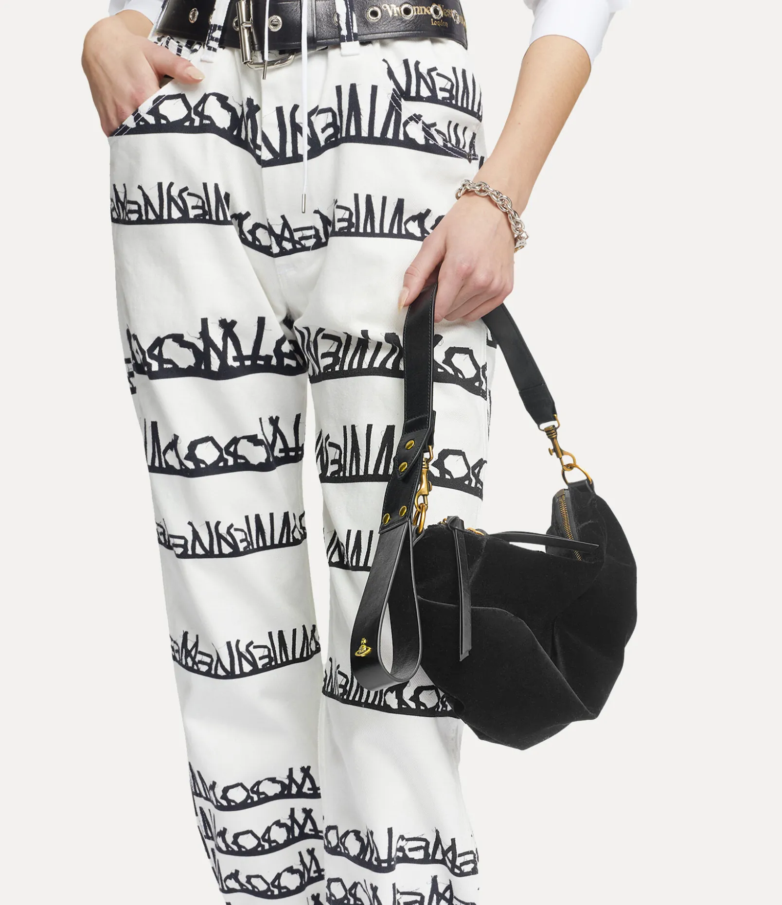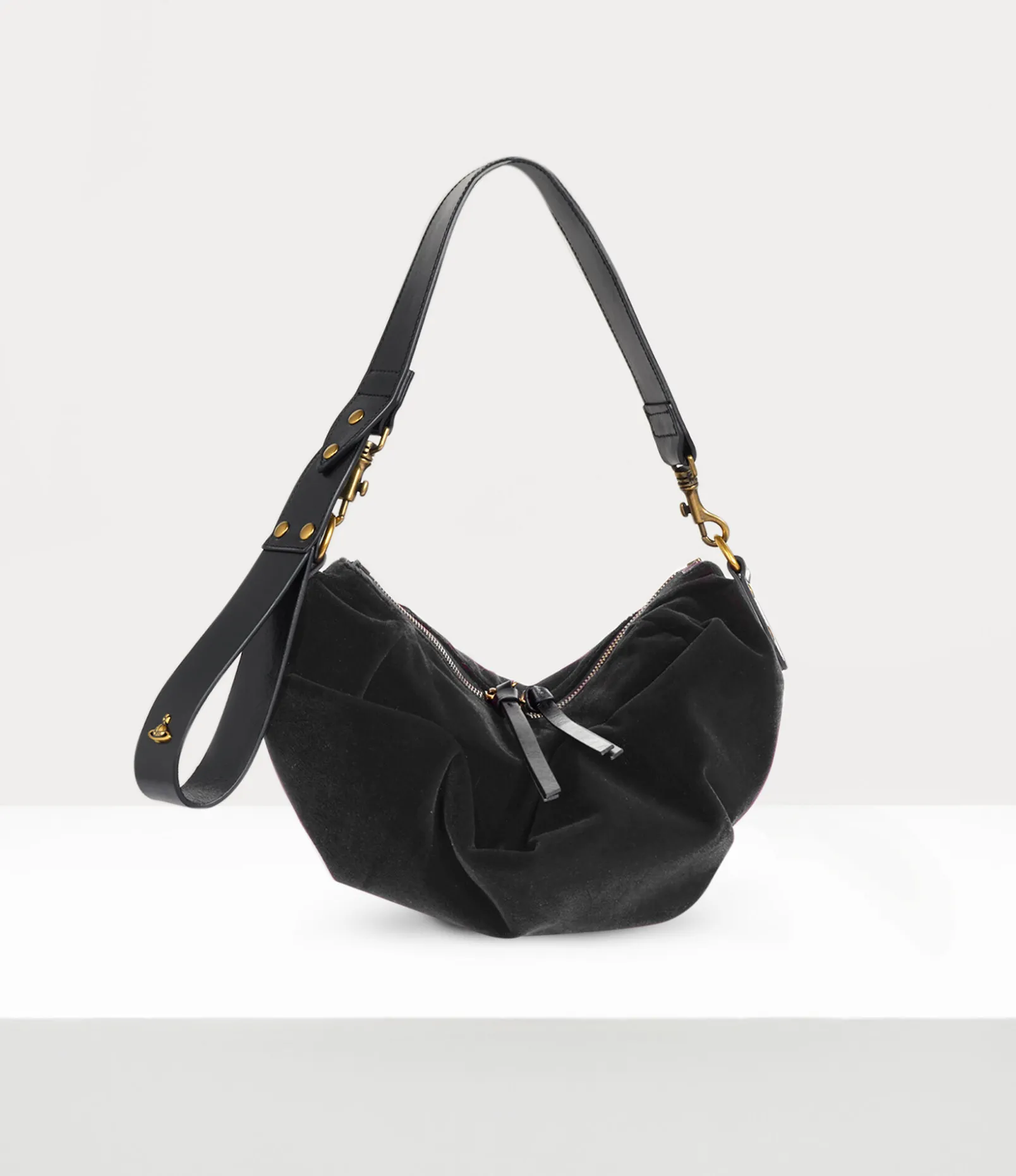 Our Small Agnes Shoulder bag features a unique pattern cutting system inspired by the Autumn-Winter 2001 ‘Wild Beauty’ collection, complete with drapery at the front and a curved silhouette. The handle is reminiscent of the bondage whips sold in our iconic Sex boutique, while the orb-branded strap recalls Vivienne’s vision of launching tradition into the future.