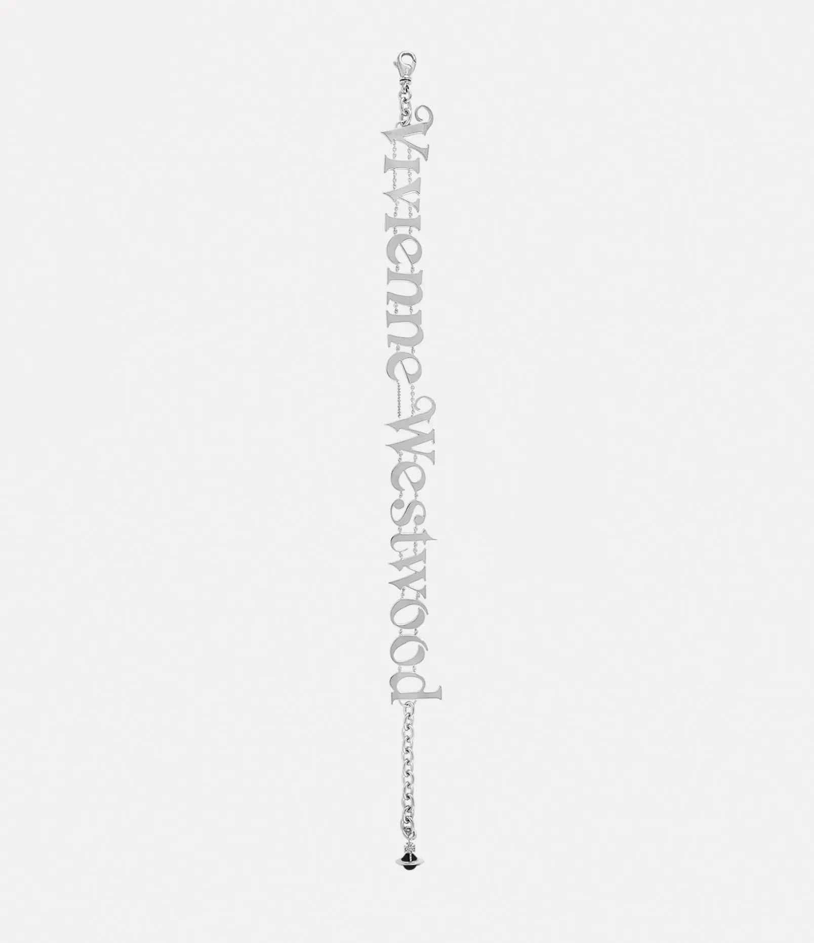 The Raimunda choker displays the words ‘Vivienne’ and ‘Westwood’ in our signature lettering, finished in silver-toned plating. The design is completed with a dangling orb motif at the clasp, embodying Vivienne’s vision of advancing tradition into the future.