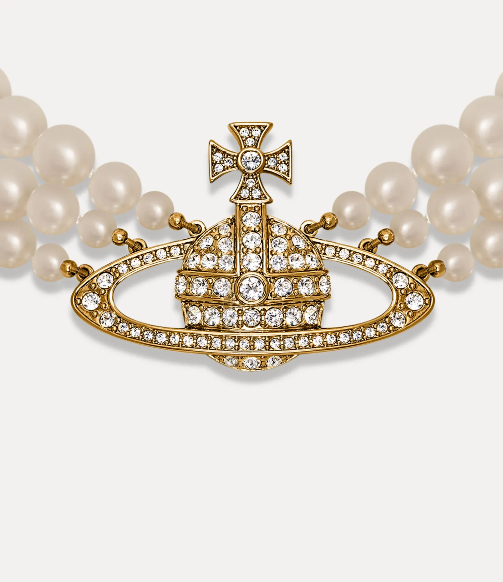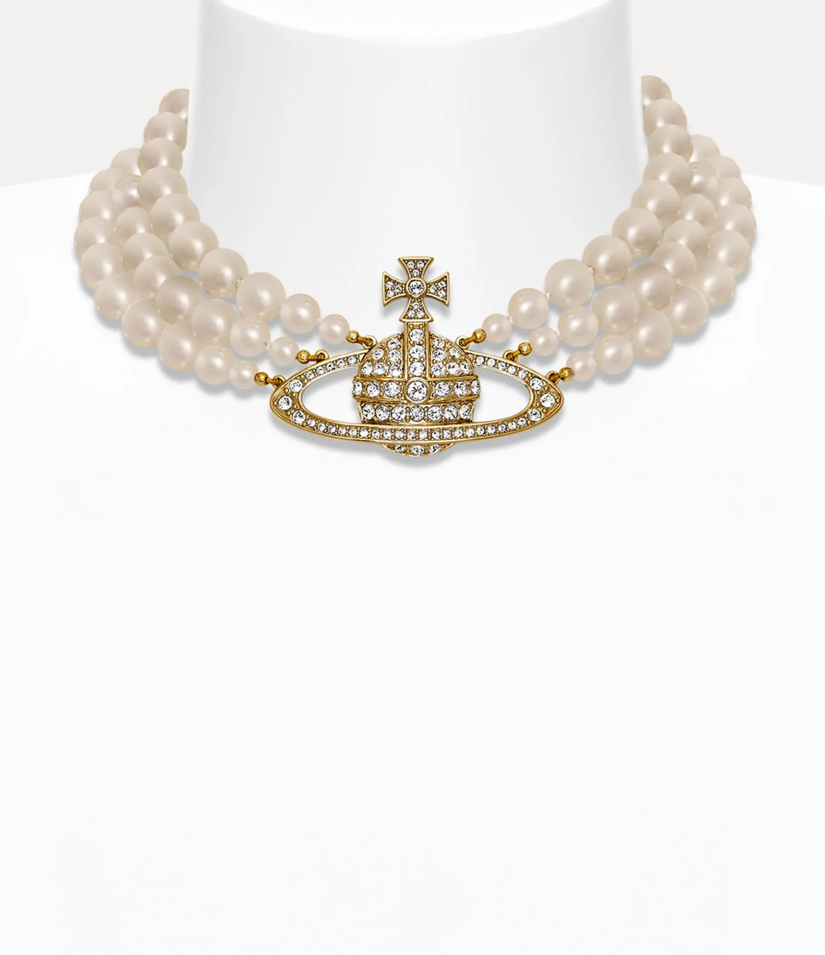 Necklaces|Classic Styles|Vivienne Westwood Three Row Pearl Bas Relief Choker