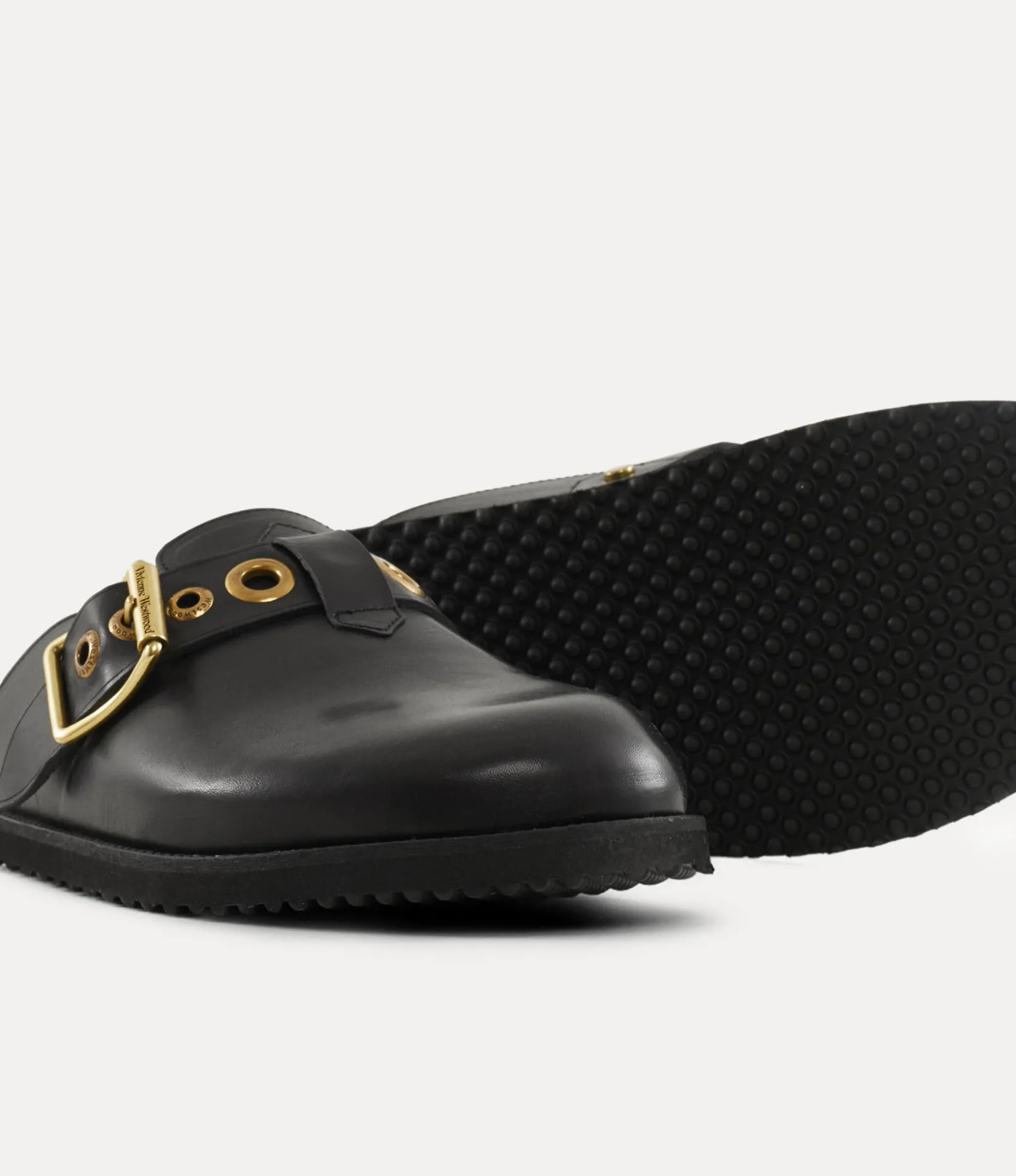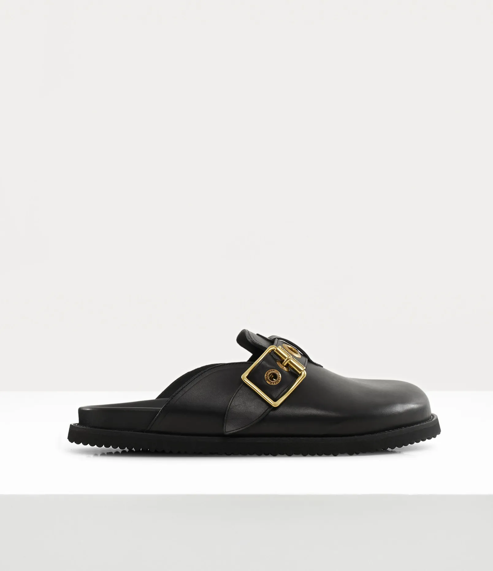 The New Oz clogs, crafted from smooth leather, showcases bold metal eyelets with antique brass plating, echoing the house’s iconic Alex belt from the Vivienne Westwood archives. Designed for optimal comfort, the clogs feature an anatomically contoured footbed, complemented by a buckle fastening with our signature lettering and a rounded toe.