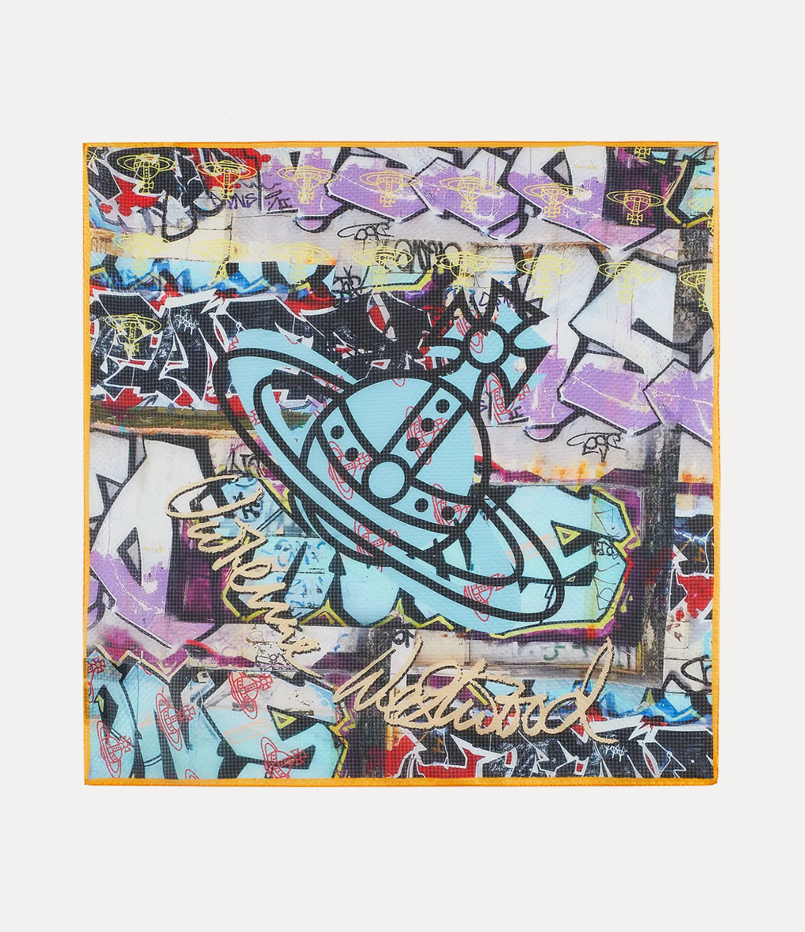 The archive ‘Graffiti’ motif, first showcased in the Andreas Kronthaler for Vivienne Westwood Autumn-Winter 2020-21 Paris show, reflects our house’s iconic punk aesthetic. This season, we have revisited the motif on our bandana, complete with an enlarged screen print of our orb silhouette – synonymous with Vivienne’s vision of launching tradition into the future.