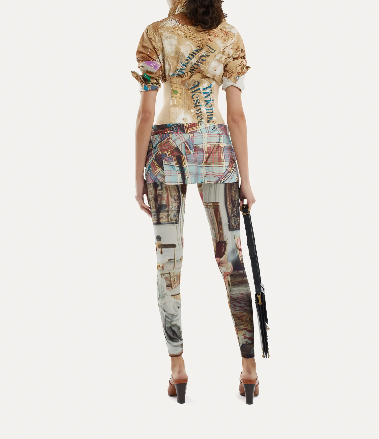 Our Foam Corset skirt has become a signature style of the house, having first appeared in the Vivienne Westwood Spring-Summer 1995 ‘Vive la Cocotte’ collection. This season, the piece receives our rubbish motif alongside the printed MacAndy tartan pattern, finished with a three-dimensional orb zipper – synonymous with Vivienne’s vision for taking tradition into the future.