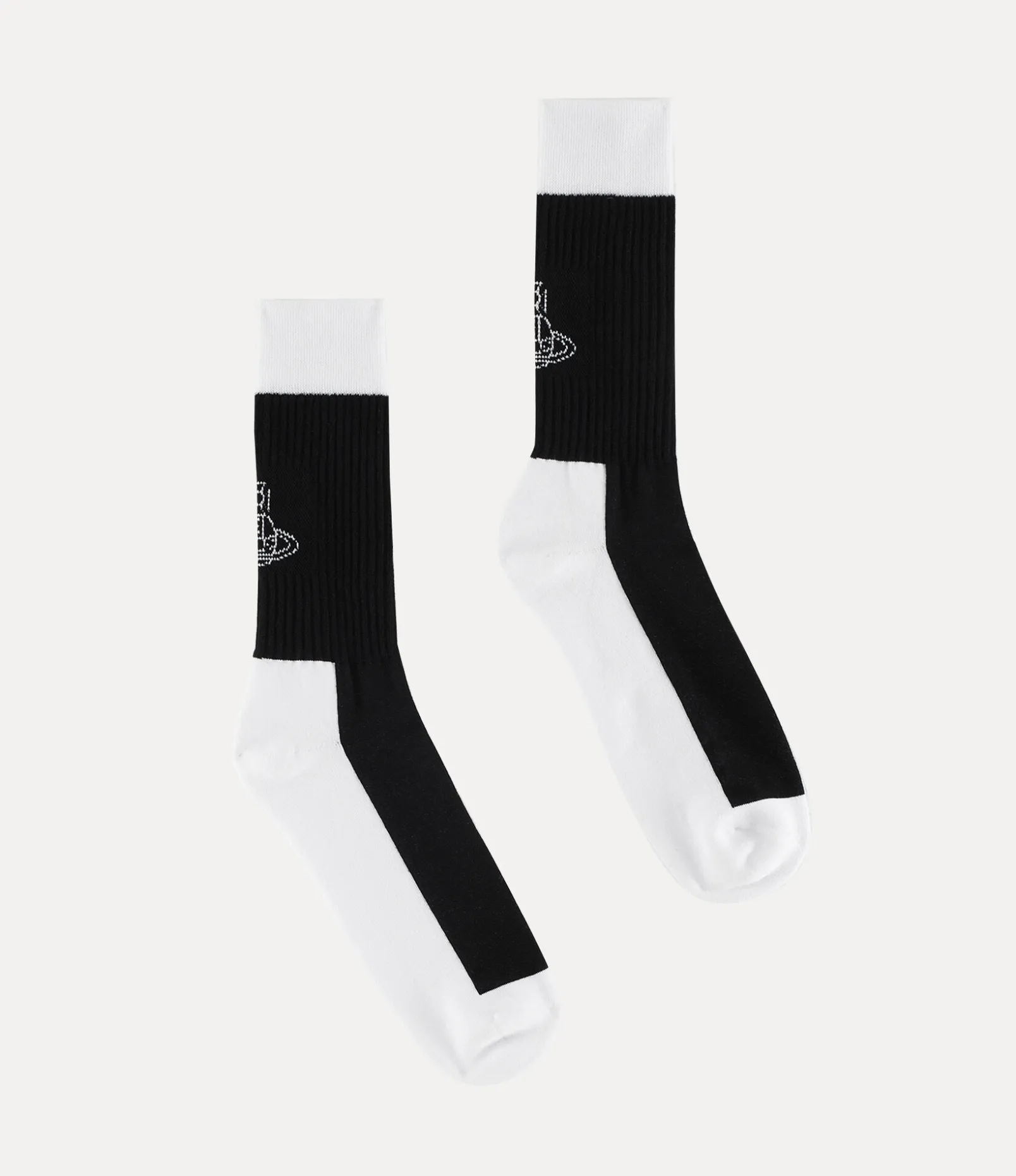 Our unisex Sporty socks in blended cotton have a two-tone panel design and feature an orb motif embroidered at the back of the ankle, a logo Vivienne Westwood designed to represent launching the past into the future.