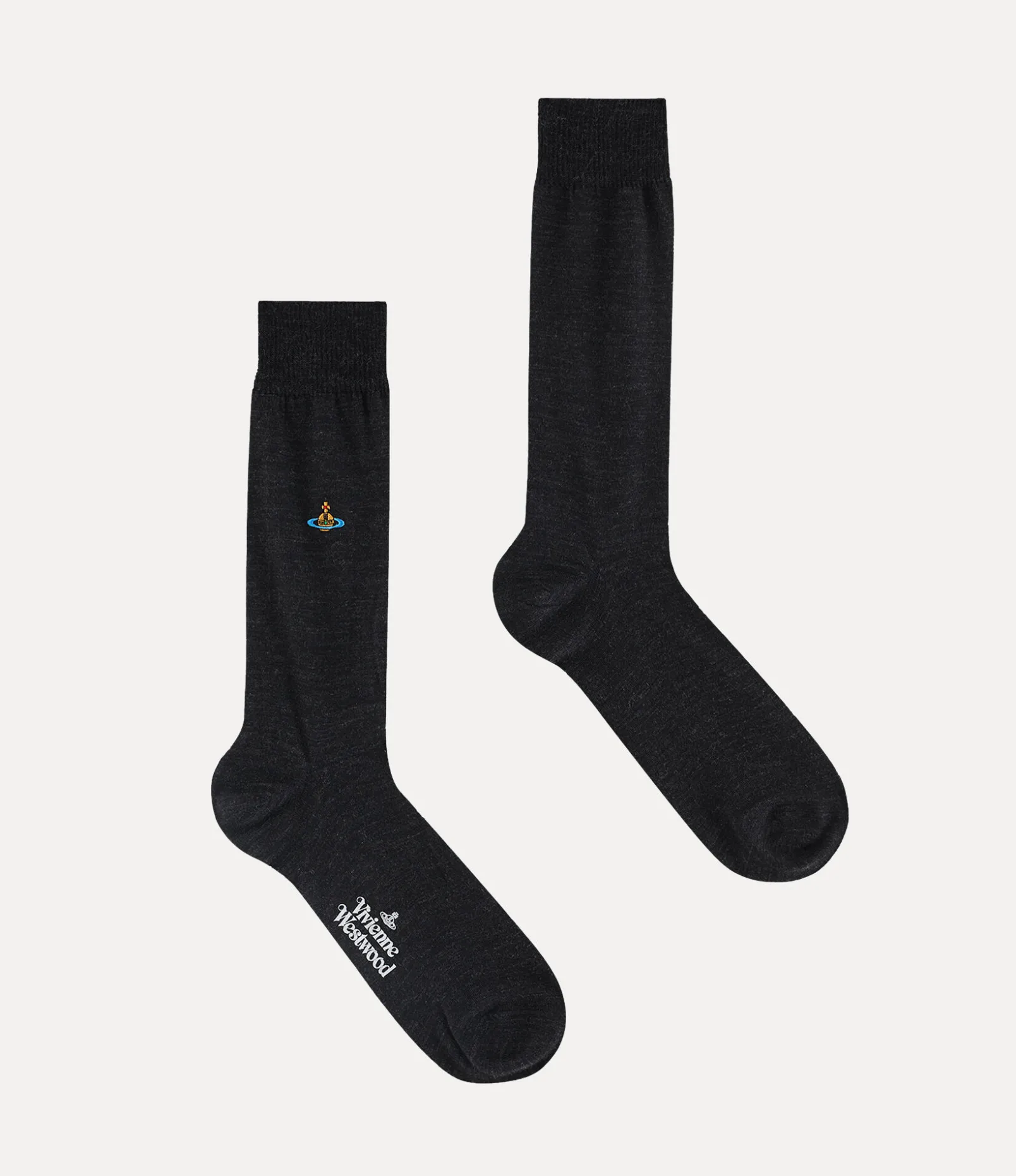 Our Uni Colour socks feature a soft wool-blend finish with a ankle-length silhouette. The piece receives our multicoloured orb embroidery, complete with the signature Vivienne Westwood lettering motif at the sole – synonymous with Vivienne’s vision of launching tradition into the future.