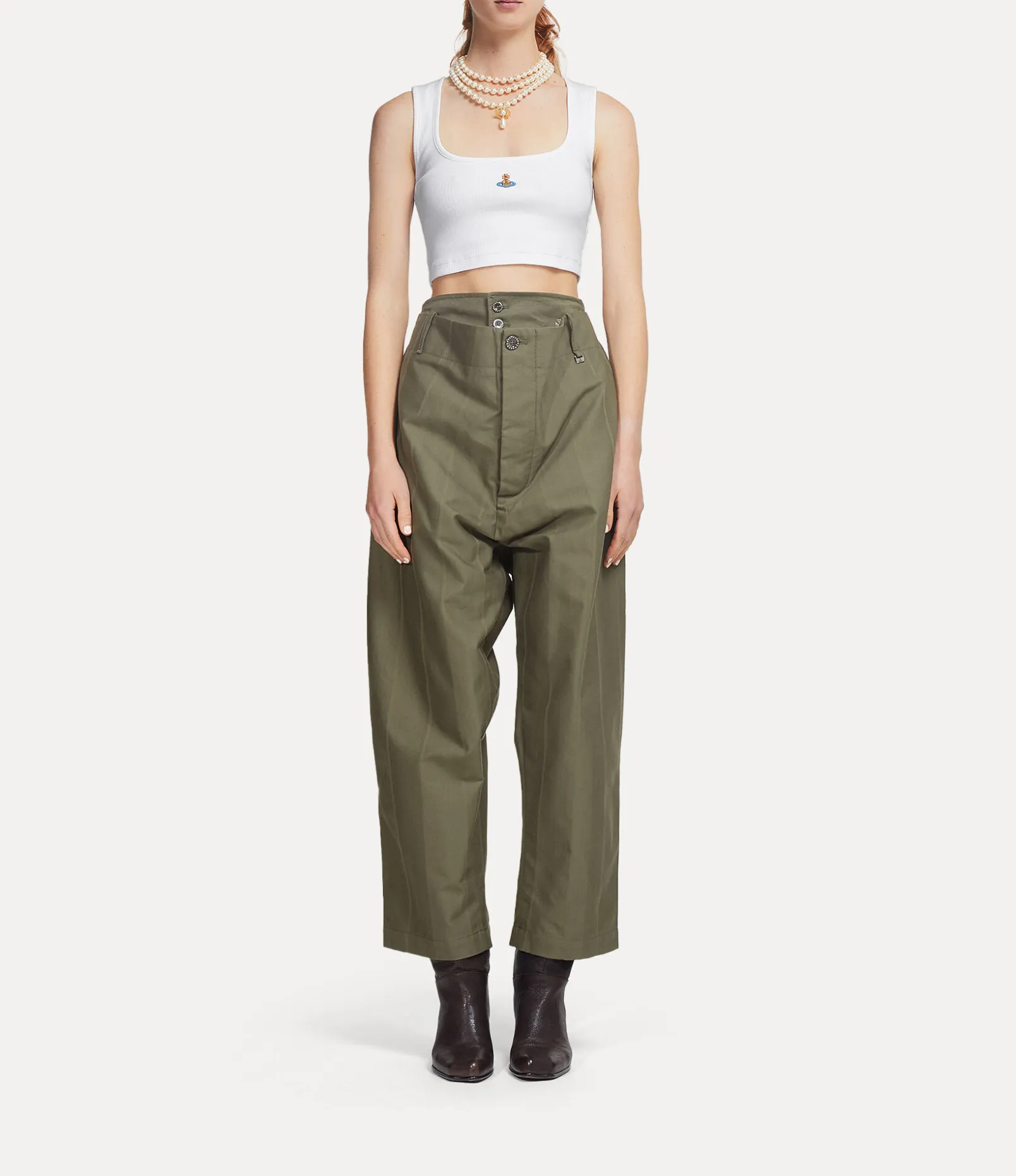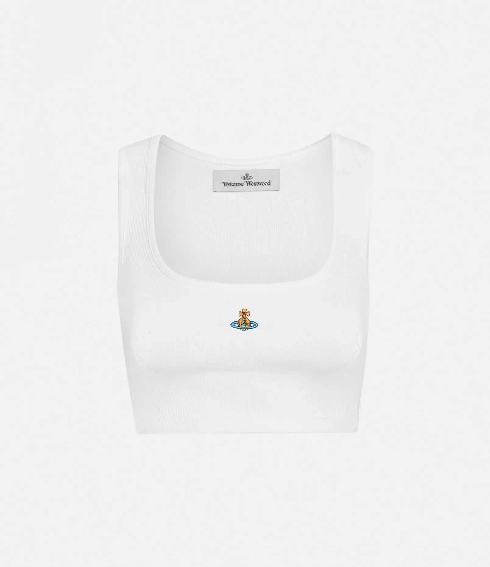 Our Crop Querelle vest features a soft cotton-blend silhouette, complete with an all-over ribbed finish. As part of our new range, the piece receives a multicoloured orb embroidery under the round neckline, synonymous with Vivienne’s vision of launching tradition into the future.