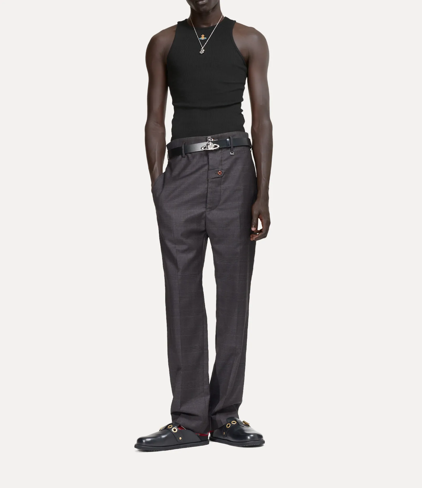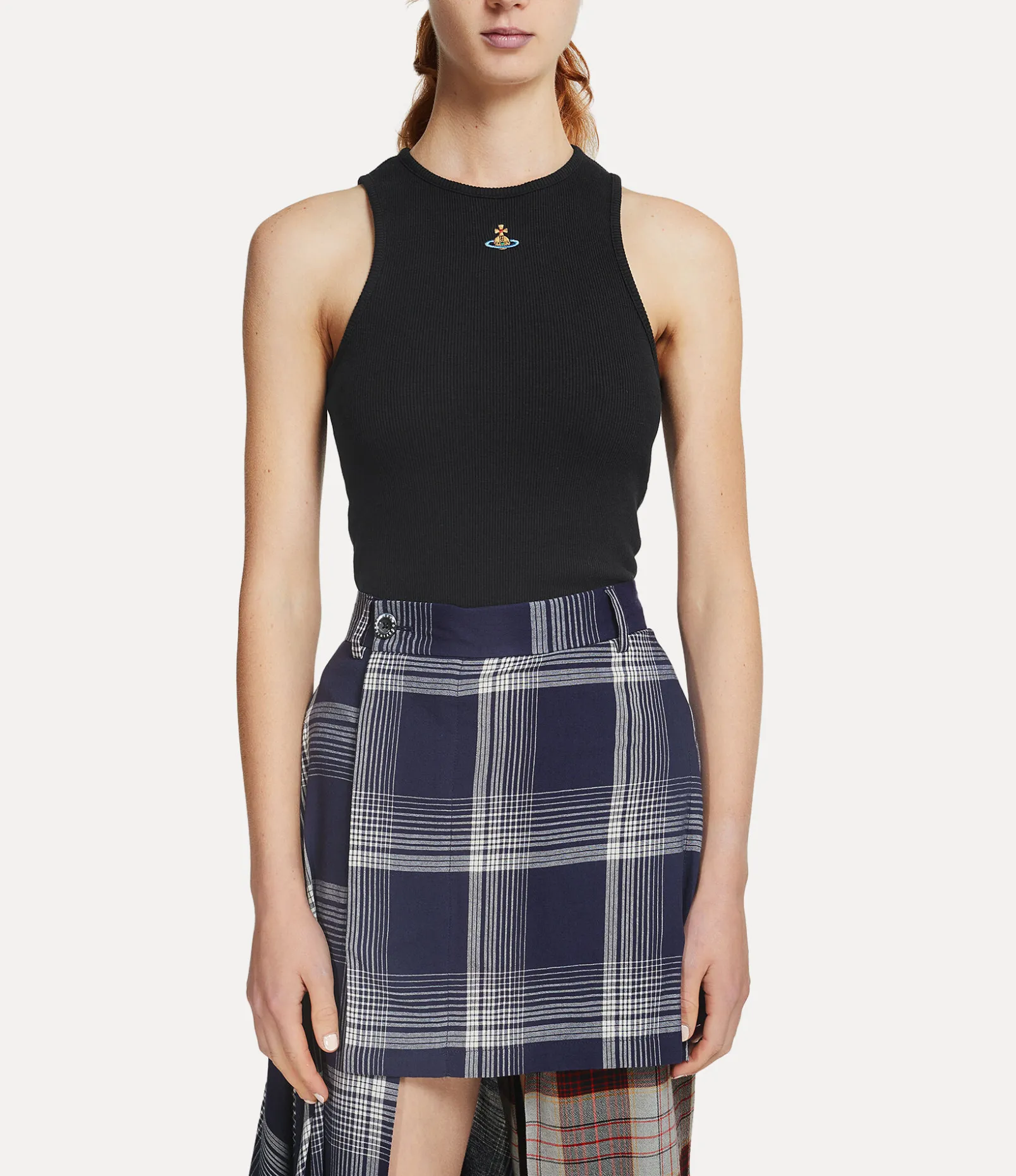 Our 90s vest features a cotton-blend silhouette, complete with an all-over ribbed finish. As part of our new range, the piece receives a multicoloured orb embroidery under the scoop neckline, synonymous with Vivienne’s vision of launching tradition into the future.