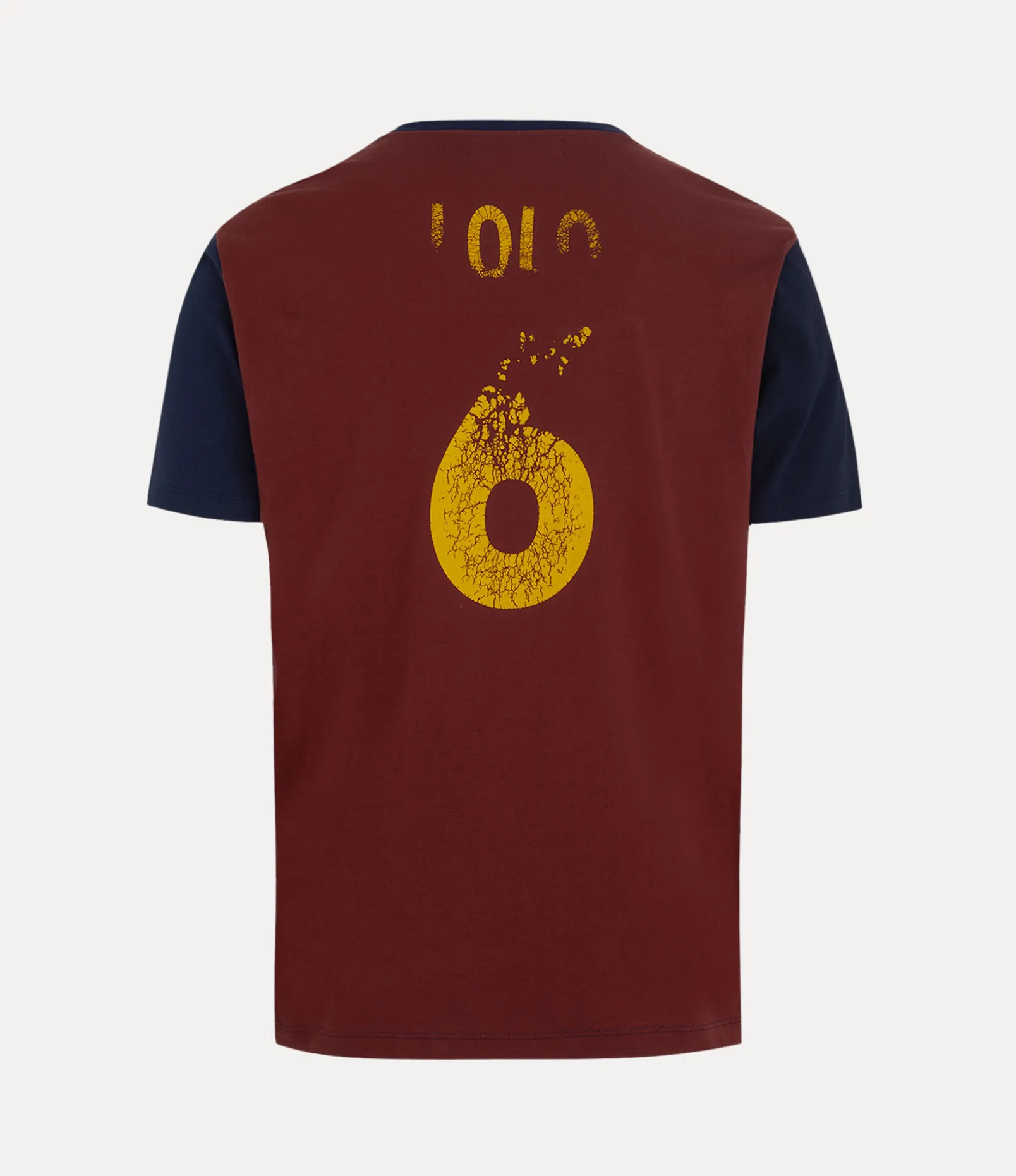 Our Classic t-shirt returns this season with an asymmetric colour-block design, complete with a printed orb on the chest – synonymous with Vivienne’s vision of launching tradition into the future. The lightweight silhouette takes inspiration from traditional football t-shirts and adopts a faded print at back, detailed with ‘1971-2071’ at the front.