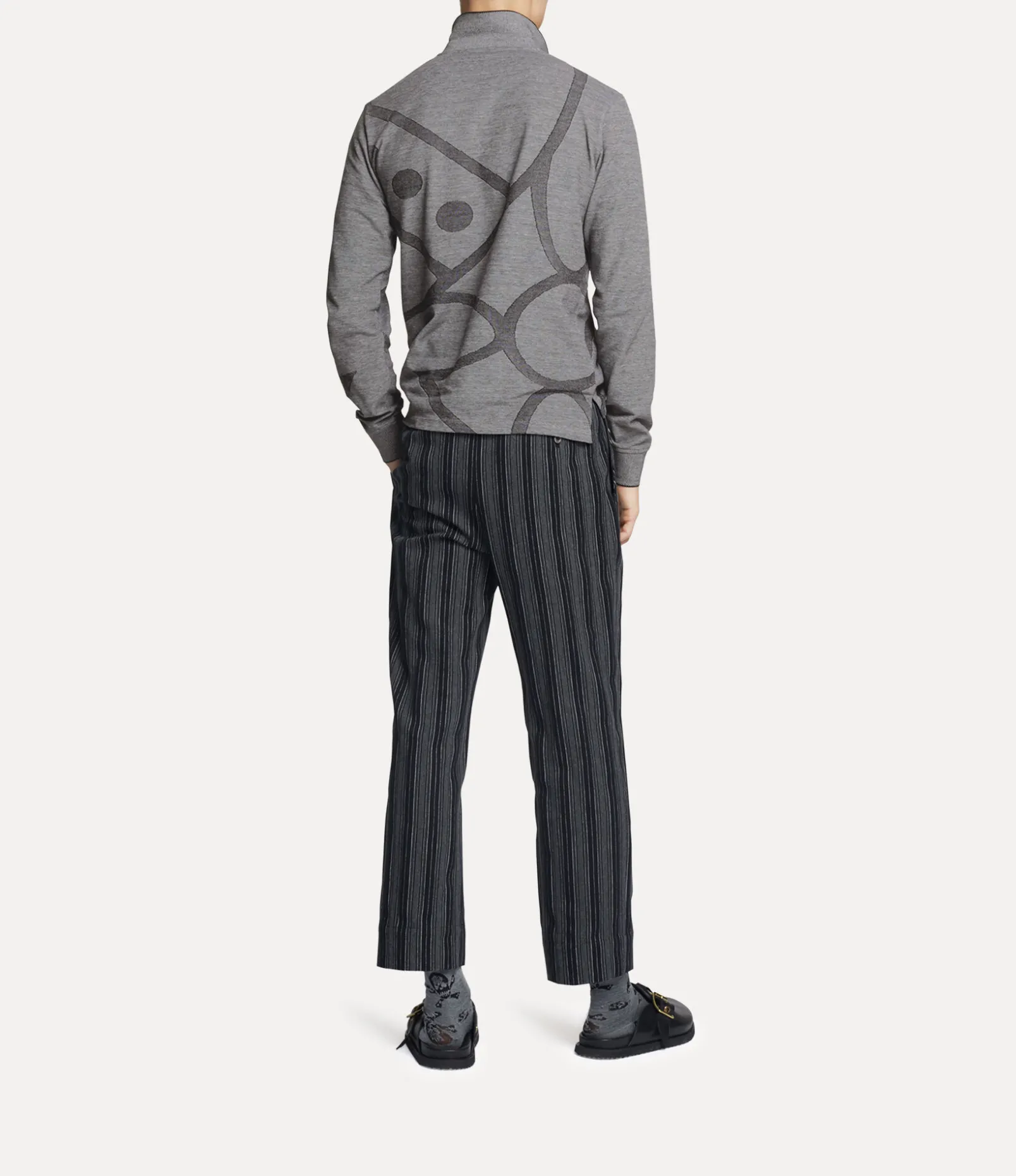The house’s orb silhouette is synonymous with Vivienne’s vision of launching tradition into the future. This season’s Long Sleeve Polo top receives a printed orb jacquard, which has been enlarged to envelop the design, adorned with an multicoloured orb embroidery on the left-hand side of the chest.