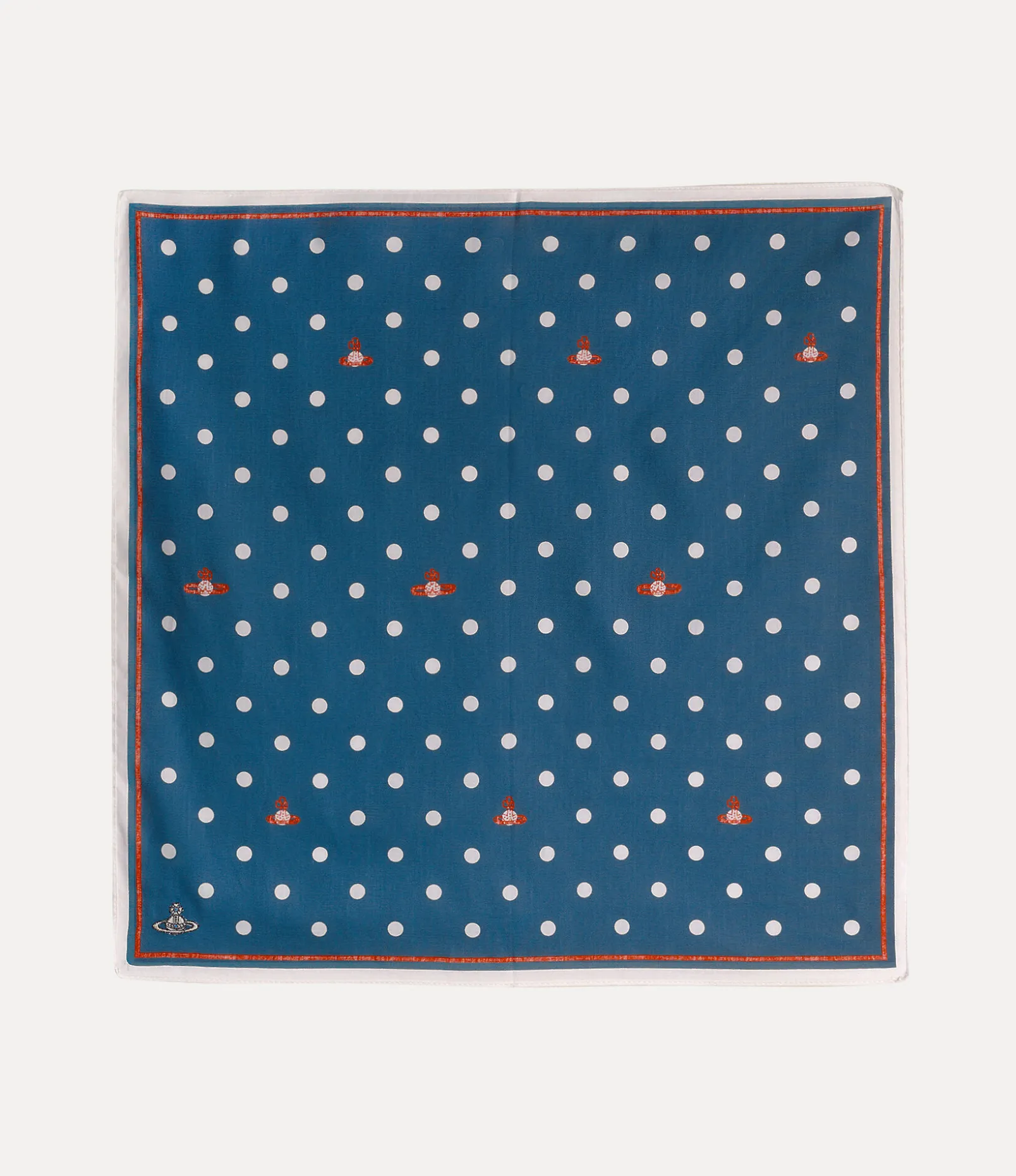 The timeless polka dot motif has appeared in many of the Vivienne Westwood collections, adding a retro-inspired touch to the designs. The silhouette of the handkerchief revives the motif and incorporates hand-drawn detailing, which Vivienne used to evoke an affection for both humanity and the planet.