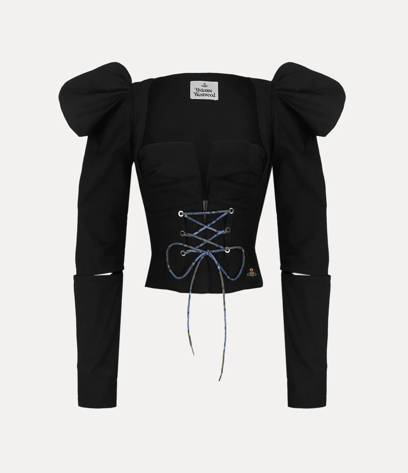 Our Long Sleeve Feba top draws influence from the Empire design movement of the 1800s, complete with a lace-up closure and corset-style silhouette. The piece recalls our ‘Cut, Slash and Pull’ collection for Spring-Summer 1990, featuring slash detailing on the sleeves.