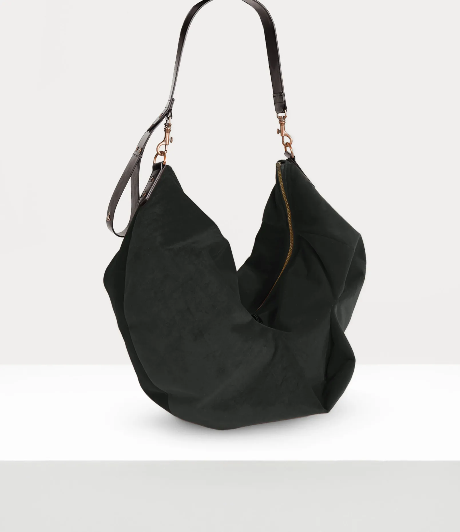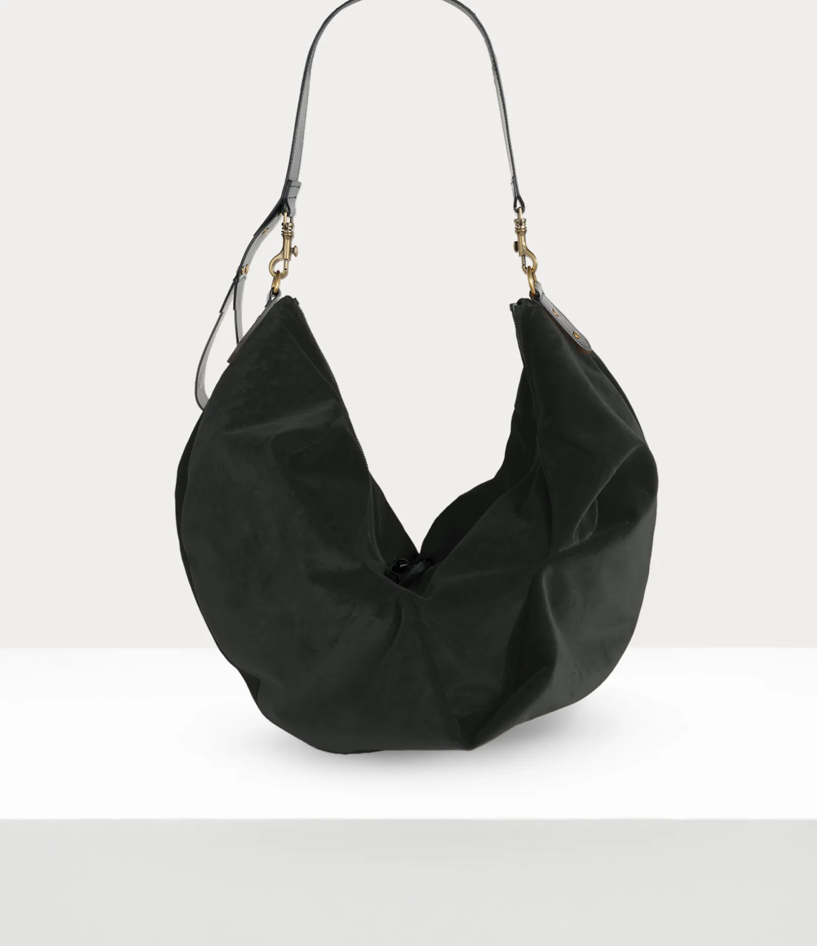 Our Large Agnes Shoulder bag features a unique pattern cutting system inspired by the Autumn-Winter 2001 ‘Wild Beauty’ collection, complete with drapery at the front and a curved silhouette. The handle is reminiscent of the bondage whips sold in our iconic Sex boutique, while the orb-branded strap recalls Vivienne’s vision of launching tradition into the future.