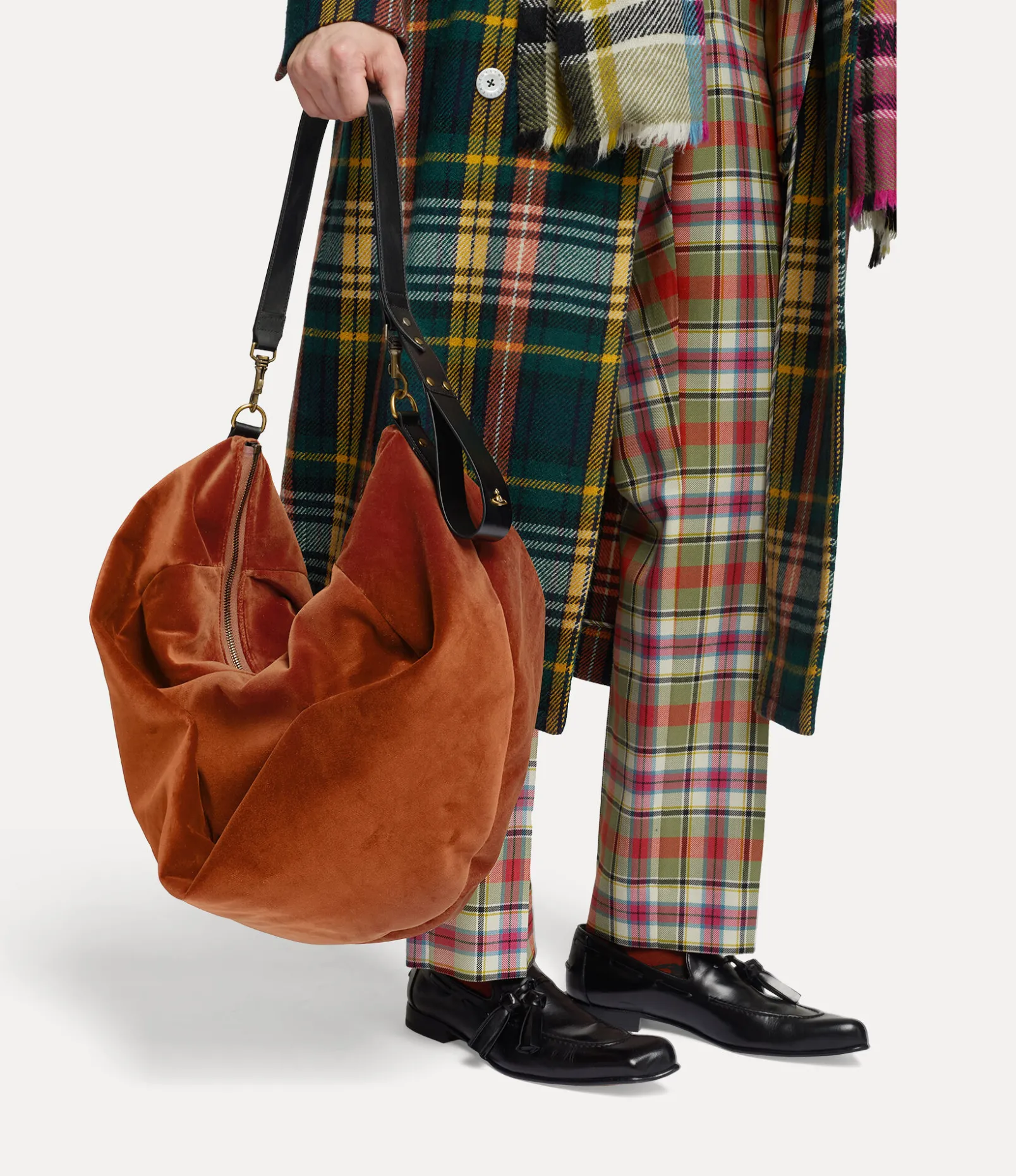 Our Large Agnes Shoulder bag features a unique pattern cutting system inspired by the Autumn-Winter 2001 ‘Wild Beauty’ collection, complete with drapery at the front and a curved silhouette. The handle is reminiscent of the bondage whips sold in our iconic Sex boutique, while the orb-branded strap recalls Vivienne’s vision of launching tradition into the future.