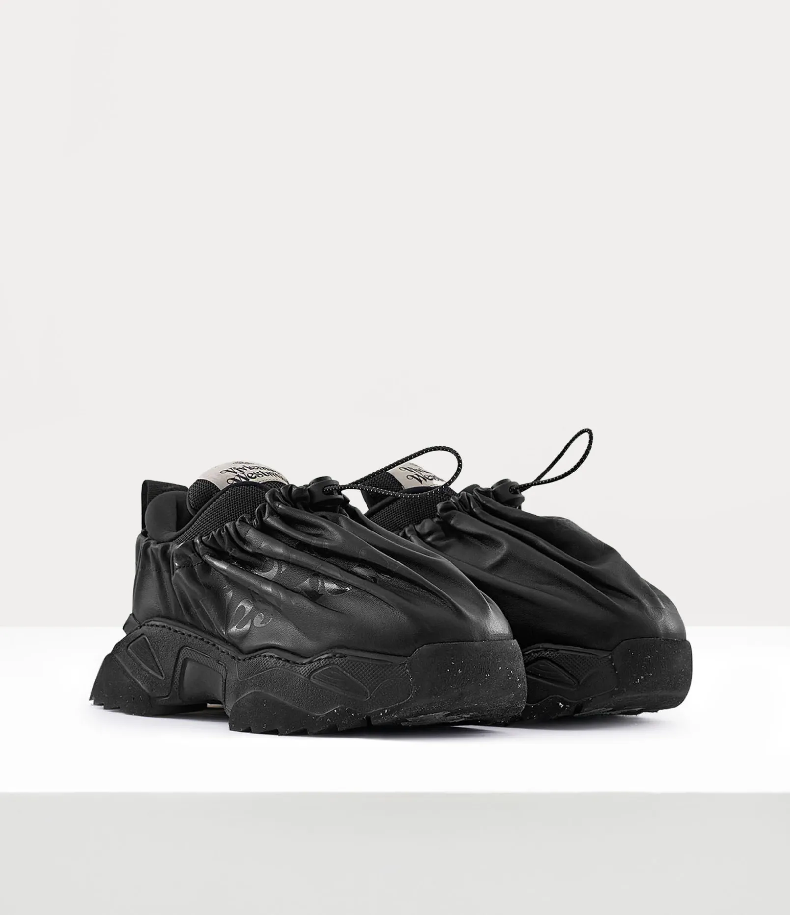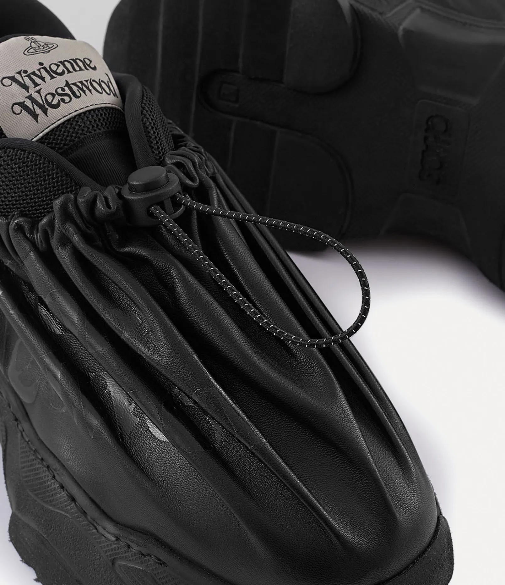 Our Romper Bag trainers draw inspiration from the iconic Vivienne Westwood shopping bags distributed in our boutiques during the Red Label era. The shoes receive a relaxed silhouette with a secure drawstring closure, adorned with the house’s lettering motif and a woven label at the tongue.