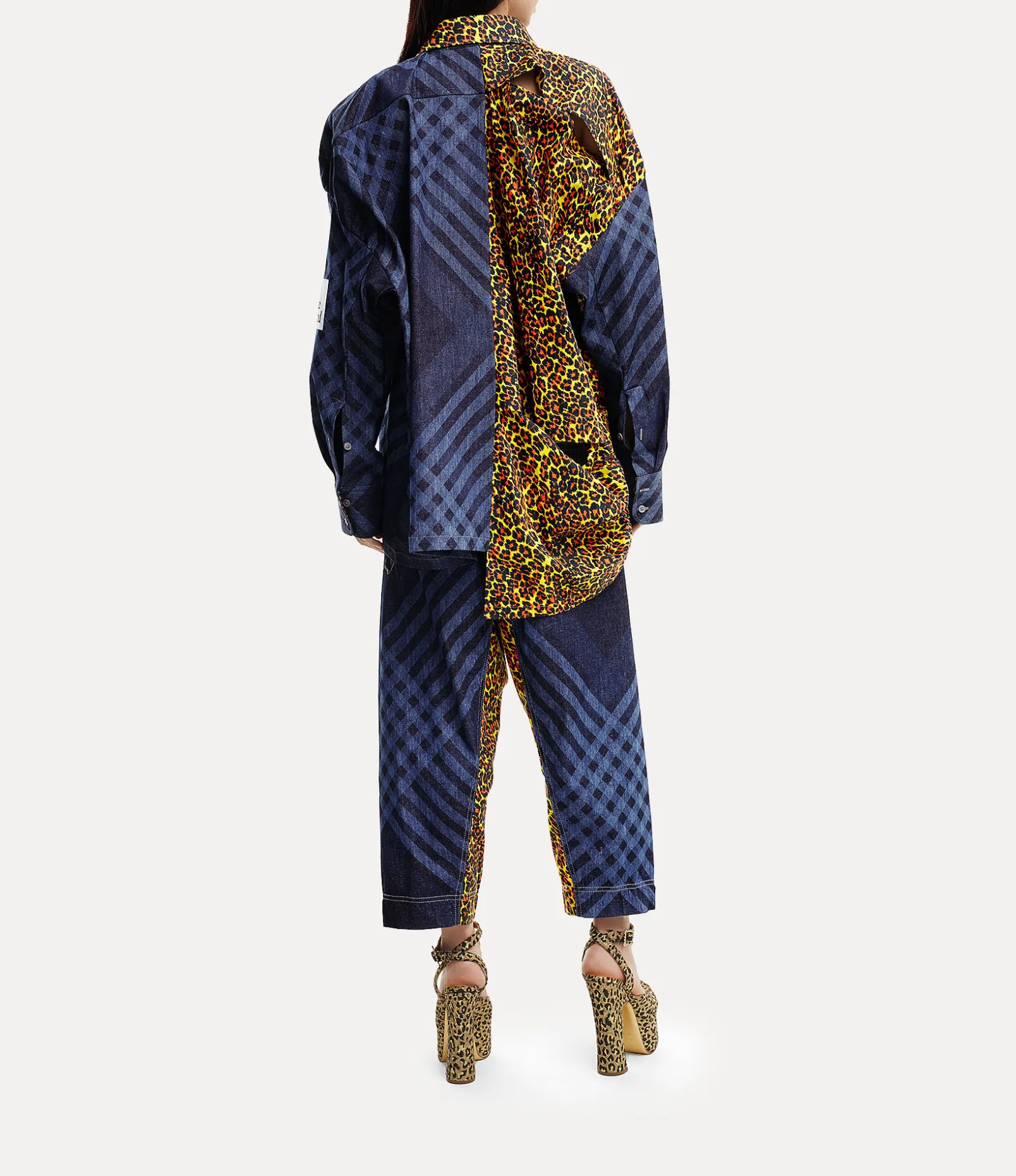 Our Macca jeans showcase leopard-print panels paired with our archive ‘Meaningless’ print, which features a combination of logos and messages that symbolise the excessive consumption prevalent in today’s society. Crafted from cotton fabric, these jeans display a tartan pattern overlay, reminiscent of the brand’s distinctive punk aesthetic.