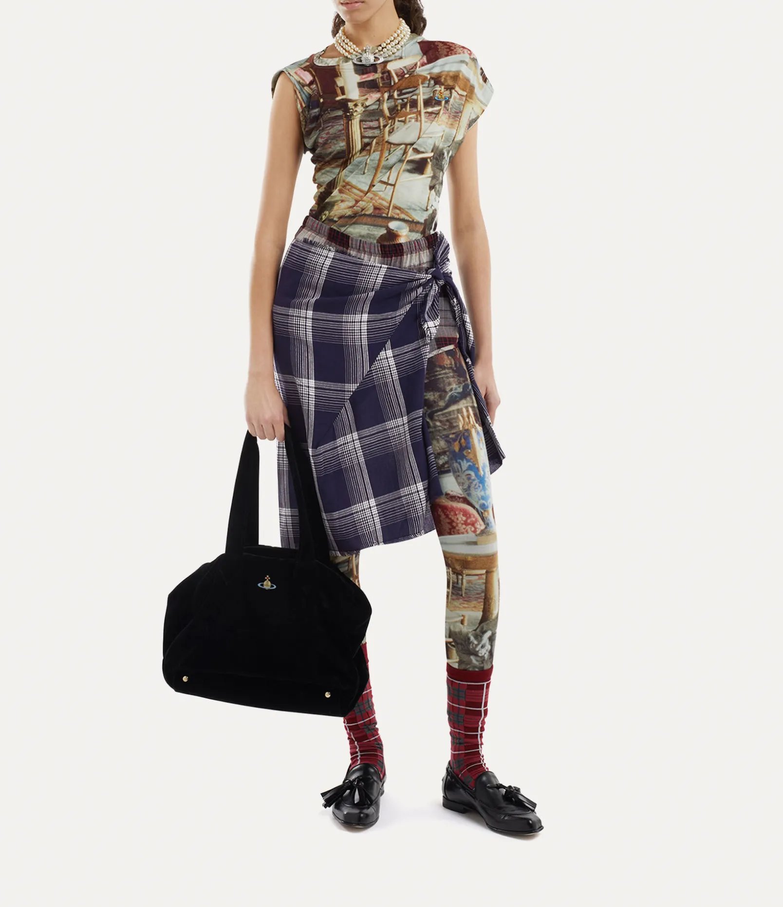 Tartan remains an essential element of the house’s heritage, emulating a sense of bygone luxury and non-conformity, reminiscent of our house’s signature punk style. The Chippendale shorts feature a mixed tartan motif, complete with an embroidered orb emblem – synonymous with Vivienne’s vision of taking tradition into the future.