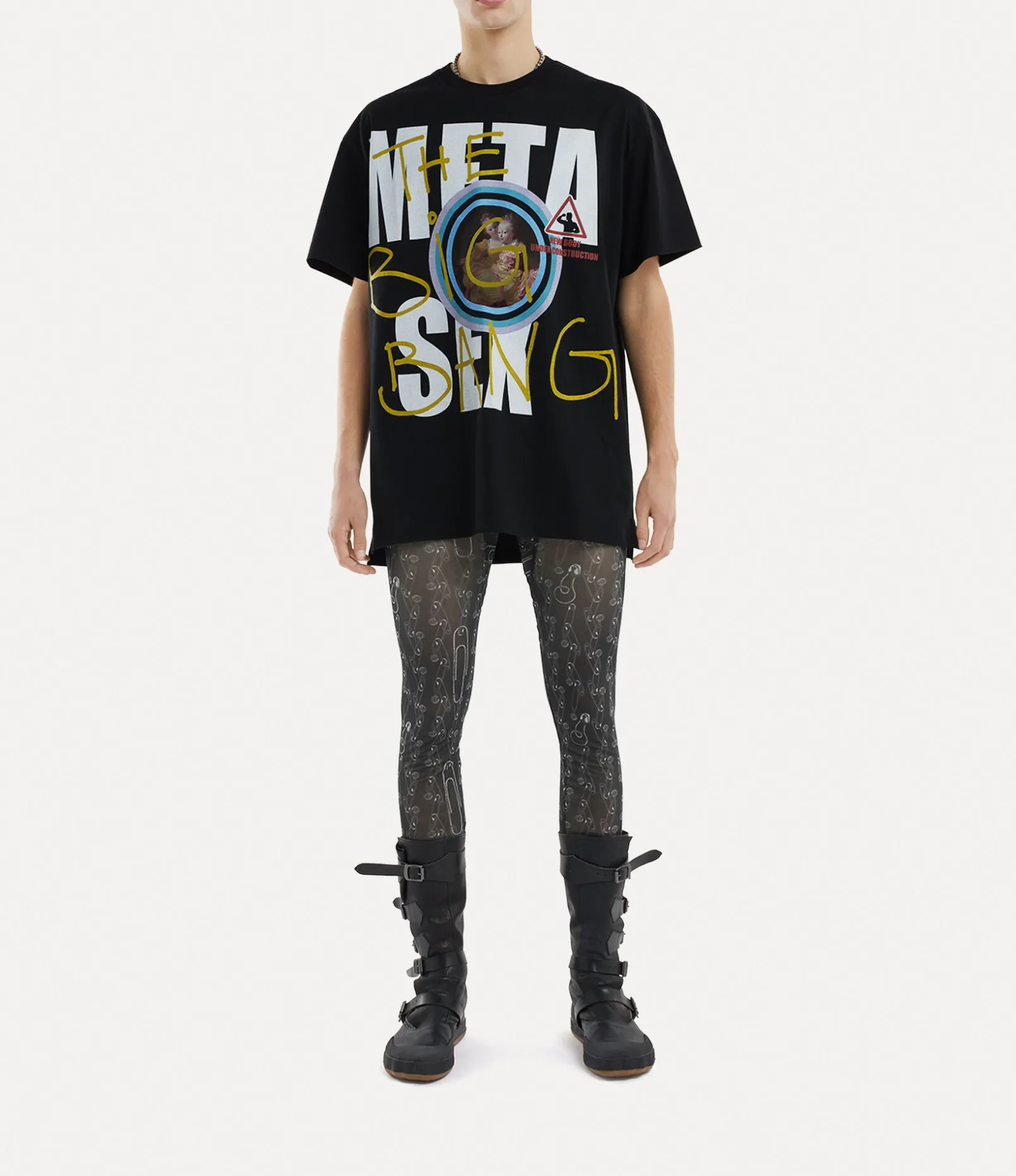 The safety pin motif is essential to the house’s iconography, used by Vivienne as a symbol of non-conformity. This season’s leggings revive the timeless safety pin motif, arranged into a stripe jacquard this season.