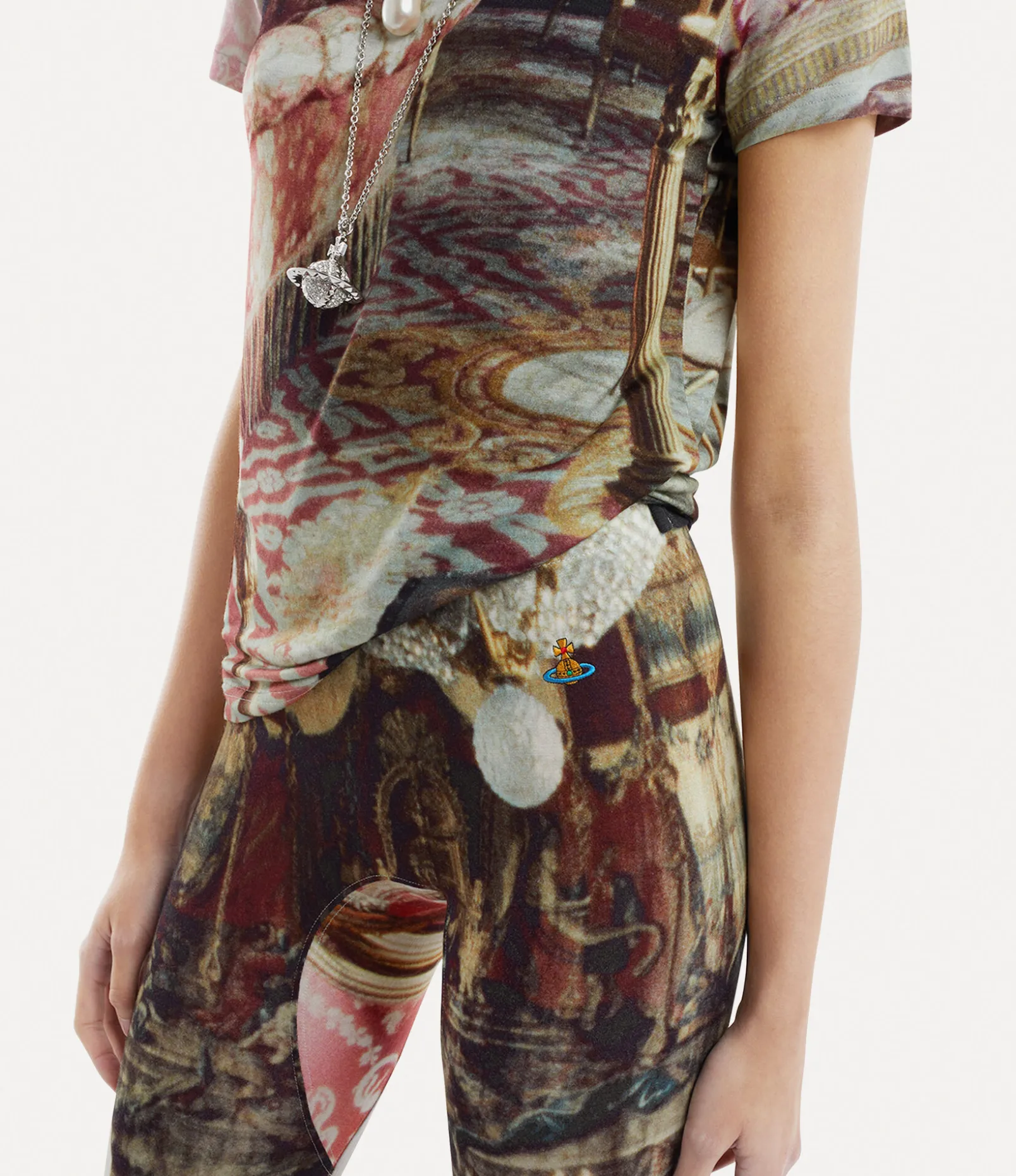 As part of our new range, our Leggings feature the classic embroidered orb motif on the hip. The all-over salon print originates from the houses Spring/Summer 1992 ‘Salon’ collection, depicting an 18th-century salon, following Vivienne Westwood’s notion of reimagining something from the past and launching it into the future.