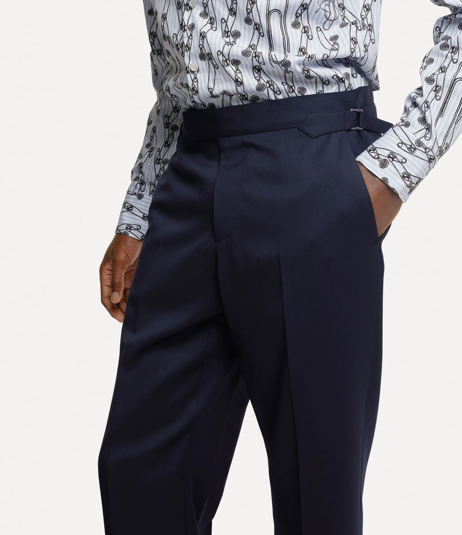Our Sang trousers in navy wool feature a straight-leg silhouette detailed with a central crease. The statement trousers are reminiscent of classic English tailoring and take inspiration from our archival men’s suits from past collections.