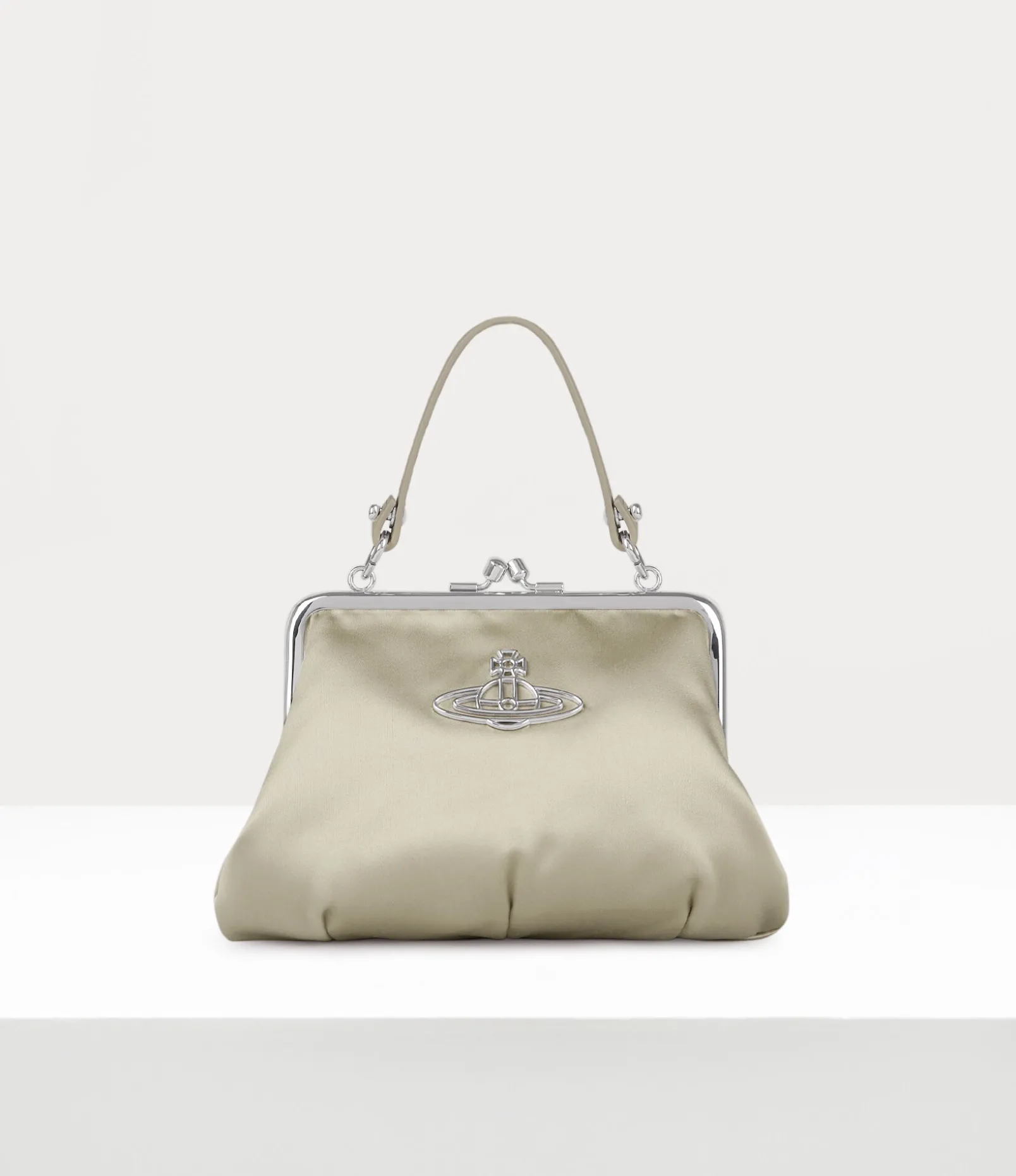 Our Granny Frame purse features vintage-inspired elements, reminiscent of antique coin purses. With a satin-blend finish, this classic features a kiss-lock frame and metal orb on the front panel, inspired by Vivienne Westwood’s orb-shaped logo, a symbol for launching tradition into the future.