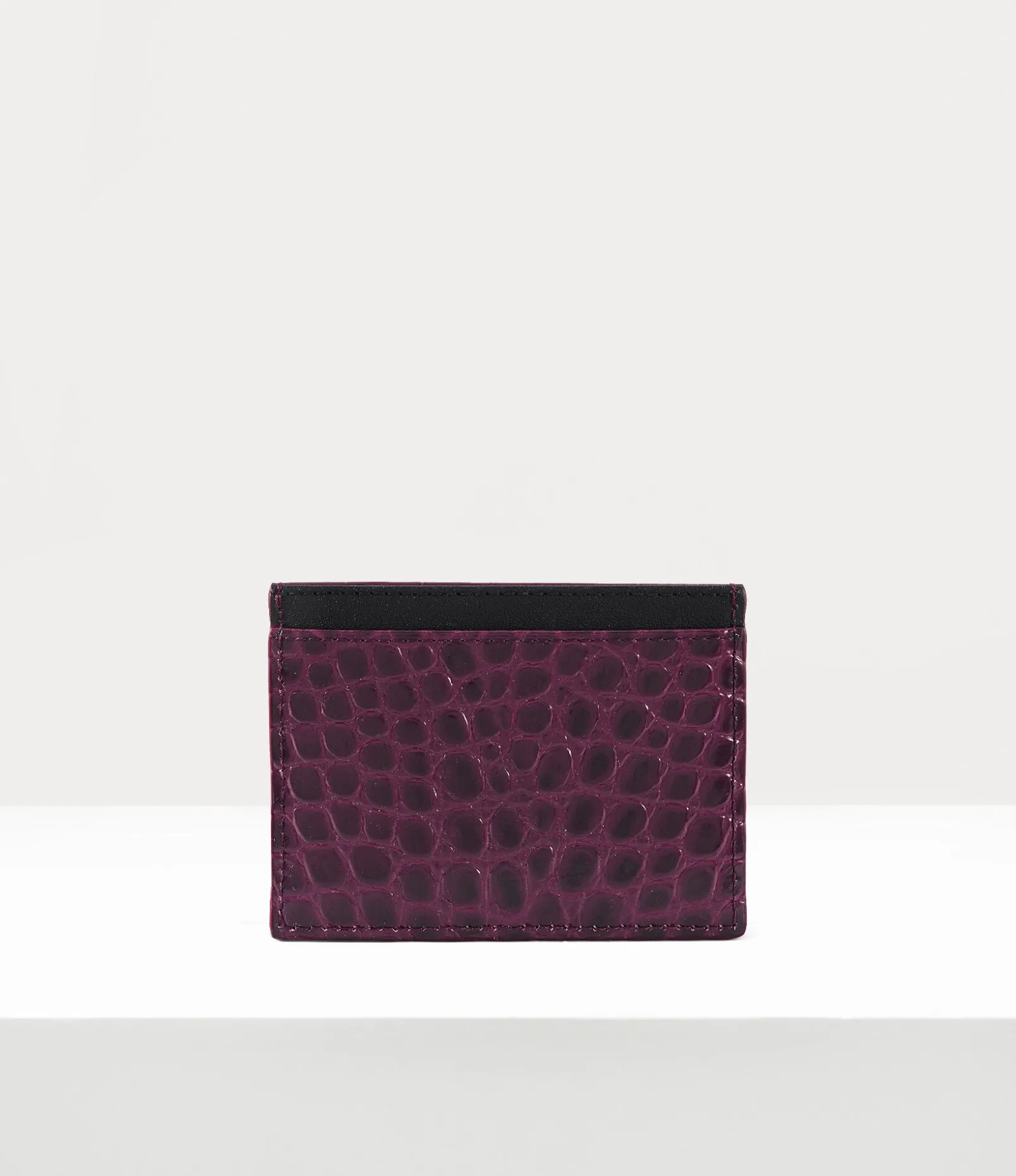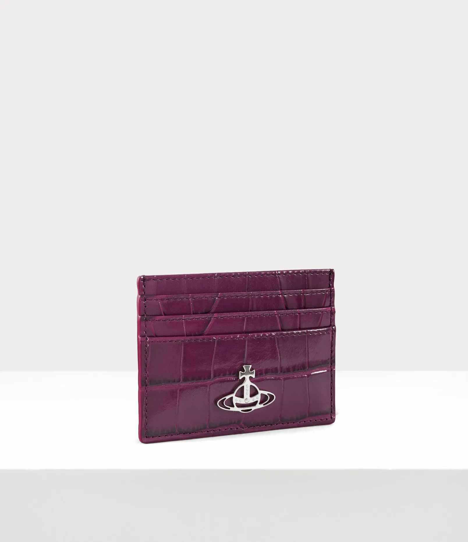 Our Flat card holder features a croc-embossed finish, complete with the house’s signature ‘line orb’ motif on the front panel, reflecting Vivienne Westwood’s vision of launching tradition into the future. As part of our new range, the piece receives this season’s shiny leather texture, finished with card slots on either side of the design.