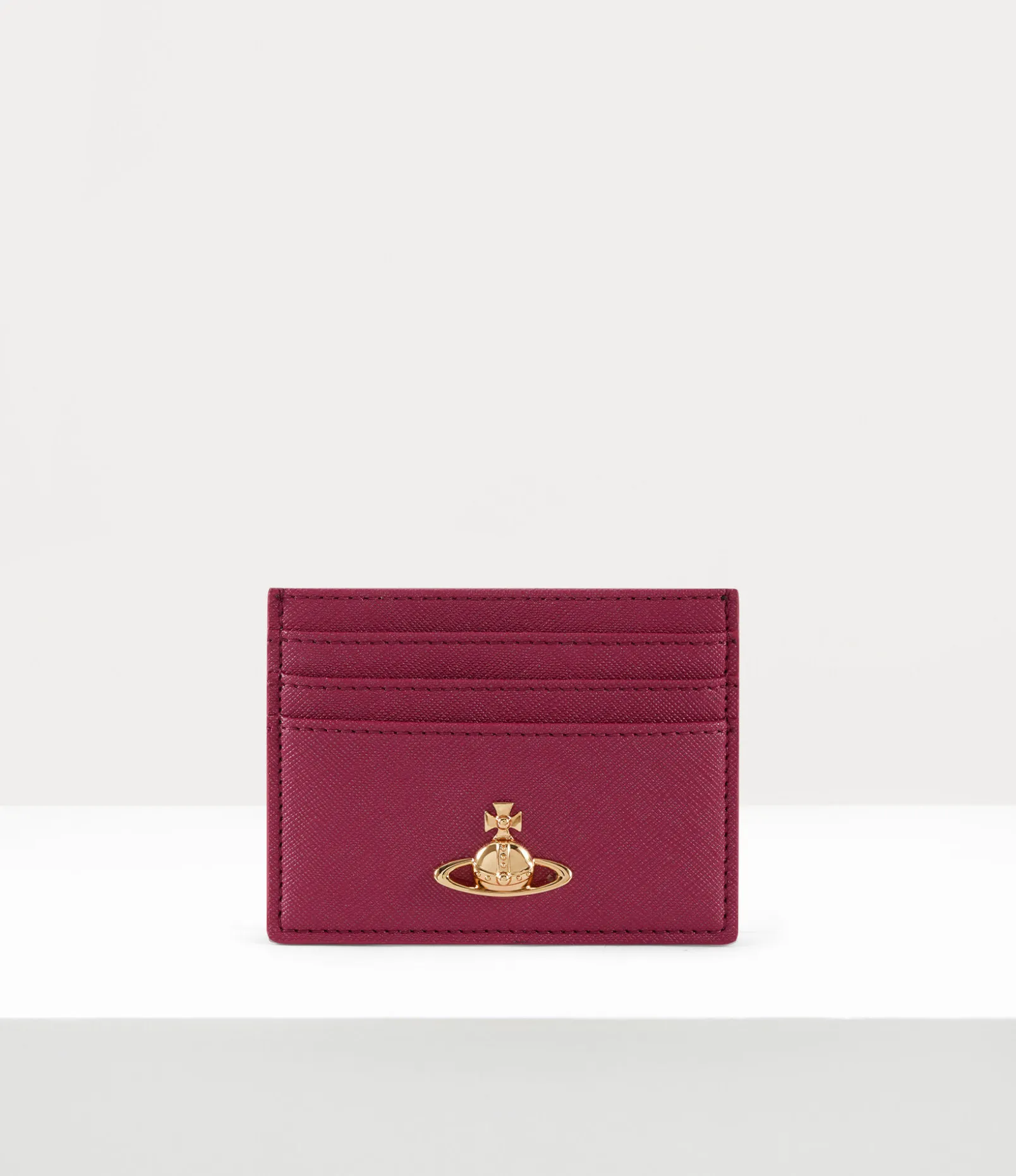 Our signature Flat card holder features a soft PU leather silhouette, complete with a saffiano-embossed motif to finish. The slim profile receives our orb branding on the front panel – synonymous with Vivienne’s vision of launching tradition into the future.